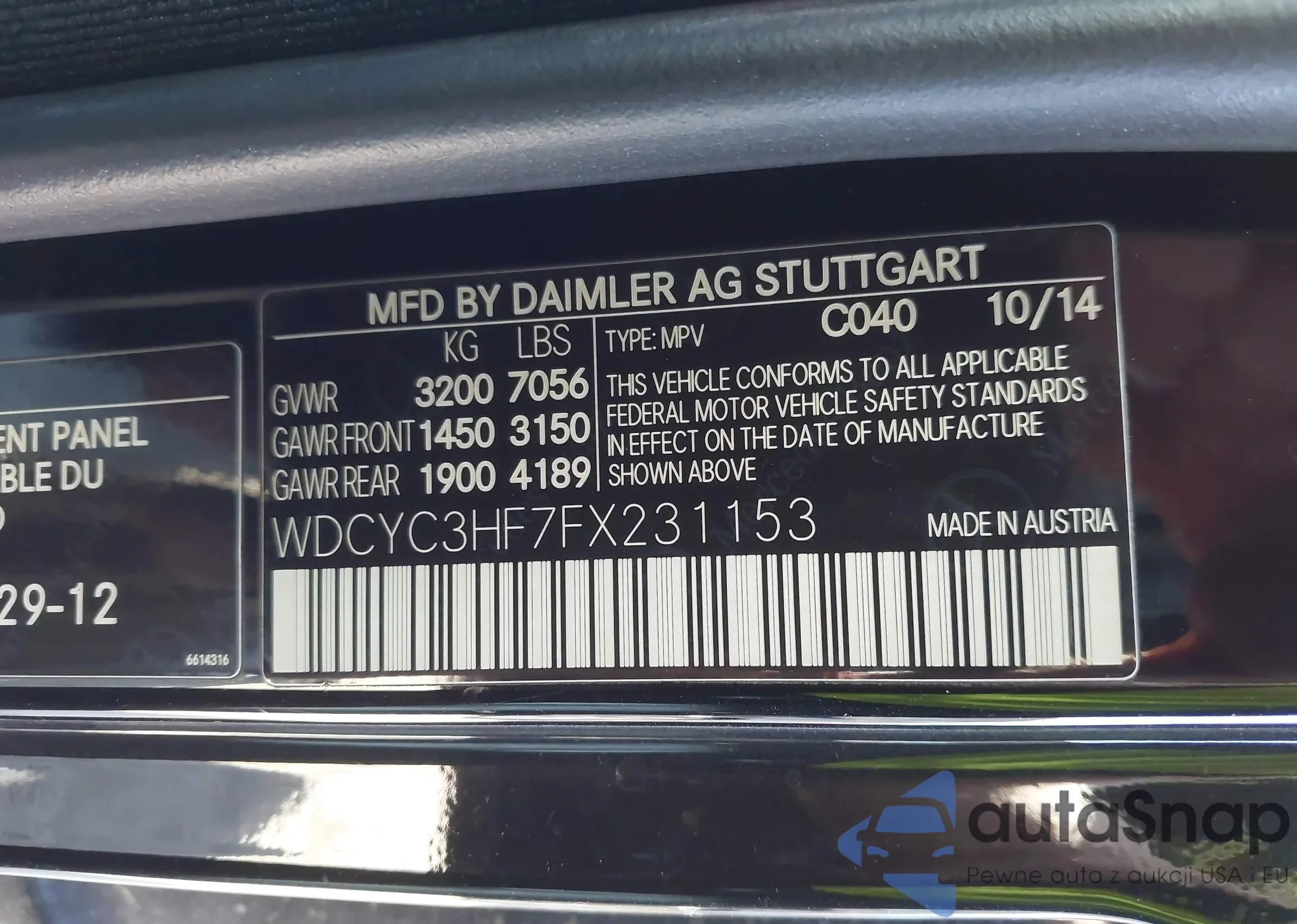 • VIN WDCYC3HF7FX231153