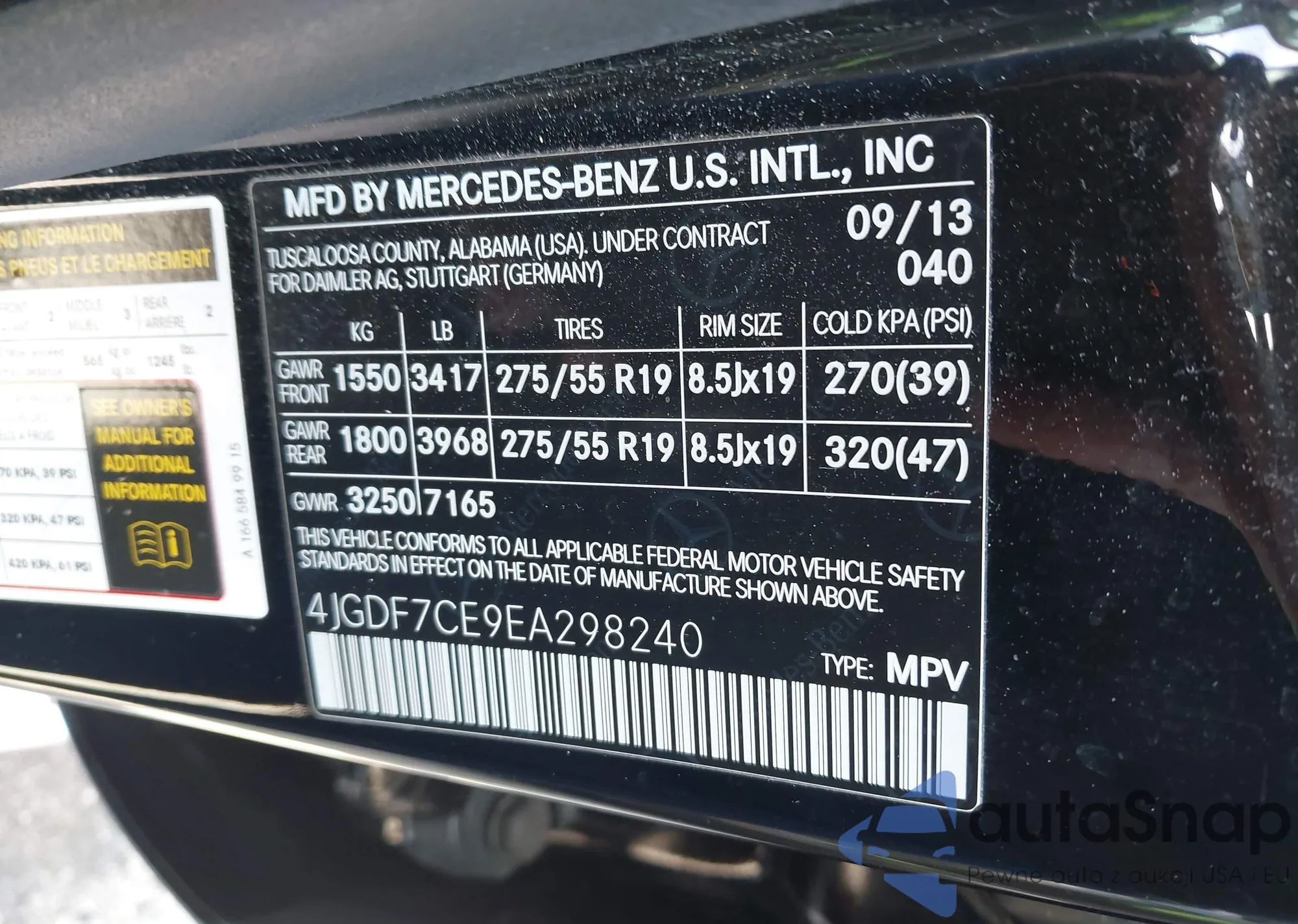 • VIN 4JGDF7CE9EA298240