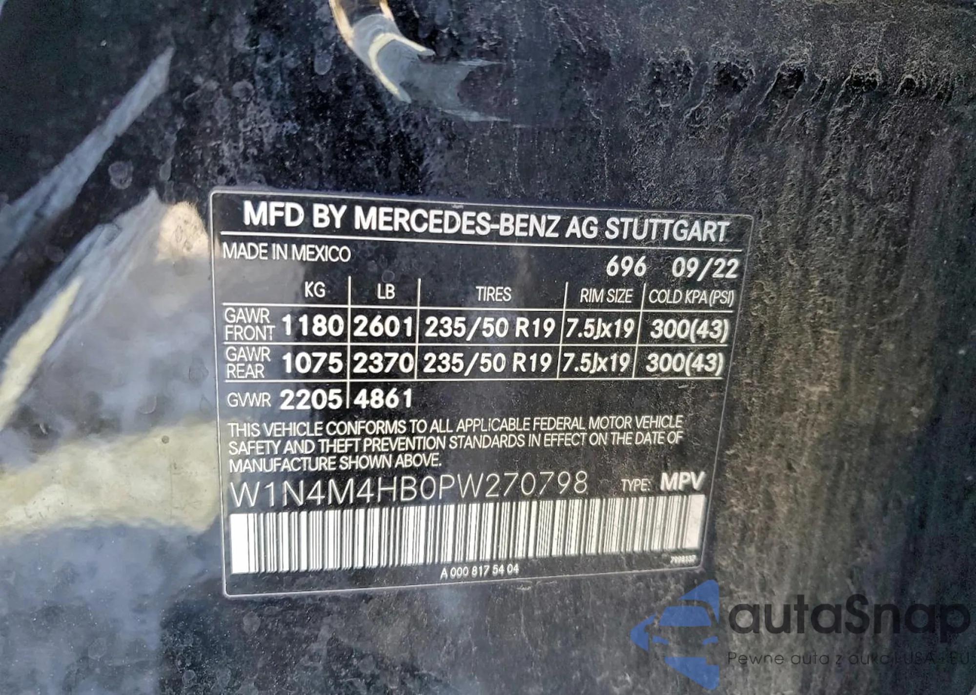 • VIN W1N4M4HB7PW274248