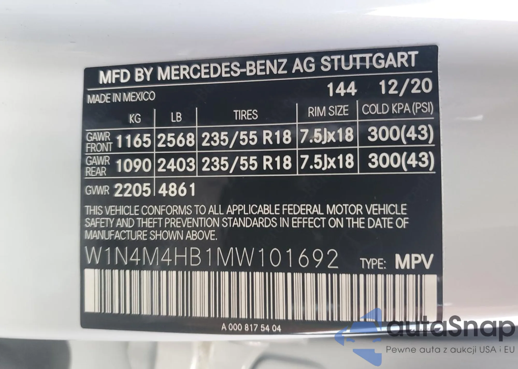 • VIN W1N4M4HB1MW101692