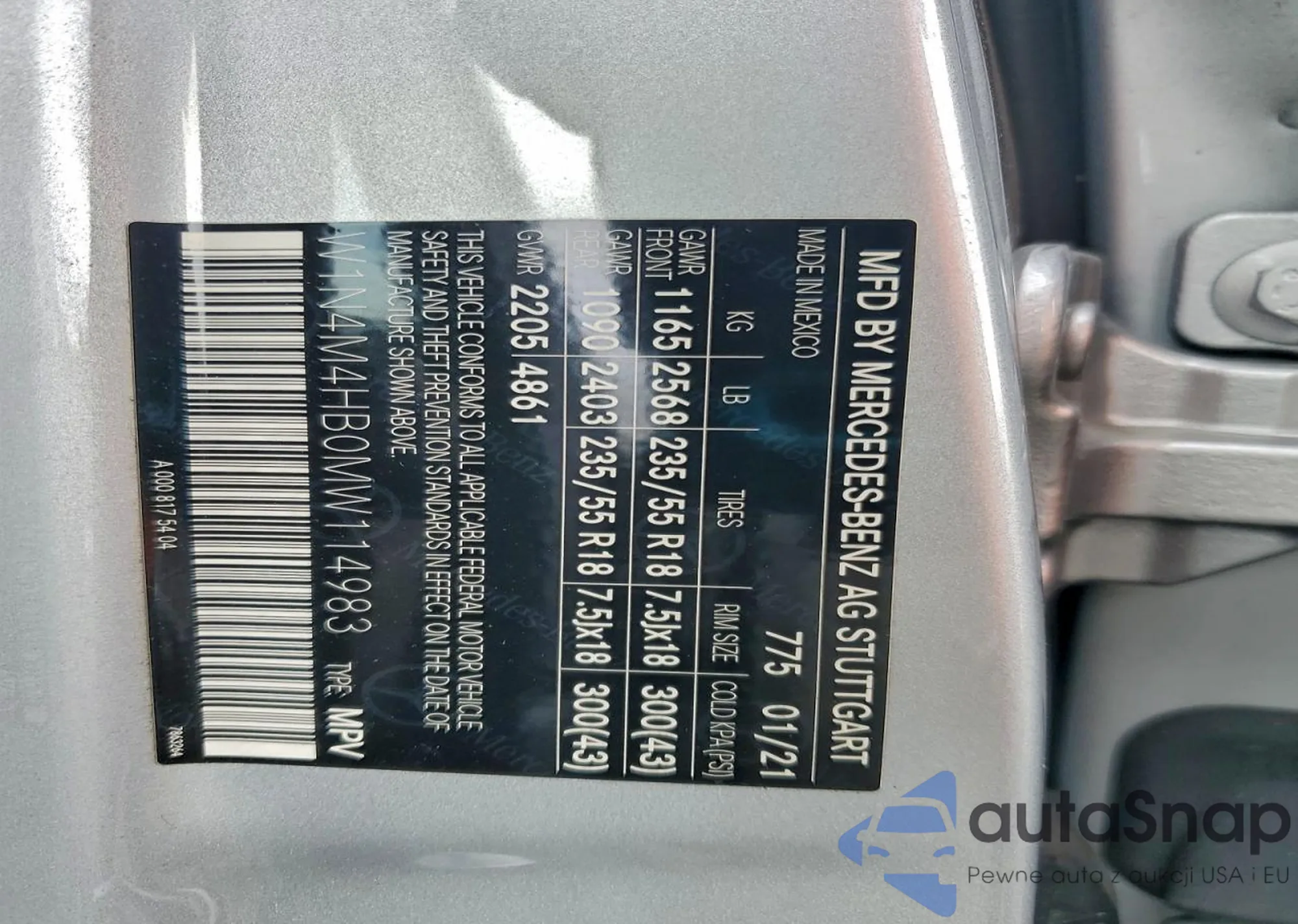 • VIN W1N4M4HB0MW114983