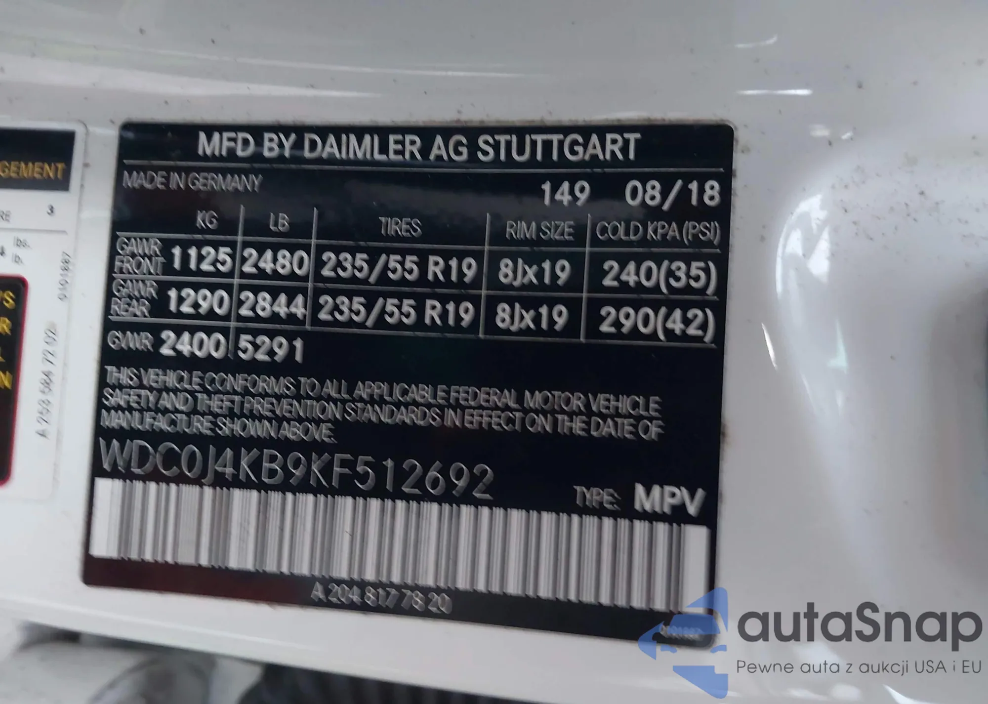 LOT: 44066057 VIN: WDC0J4KB9KF512692