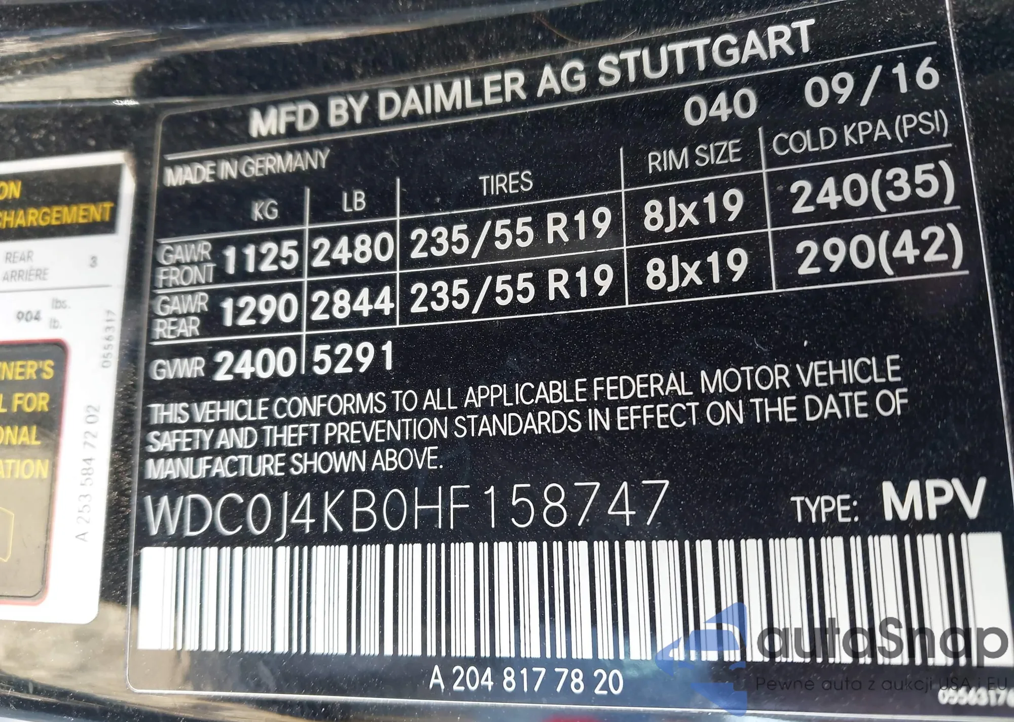 • VIN WDC0J4KB7HF201416