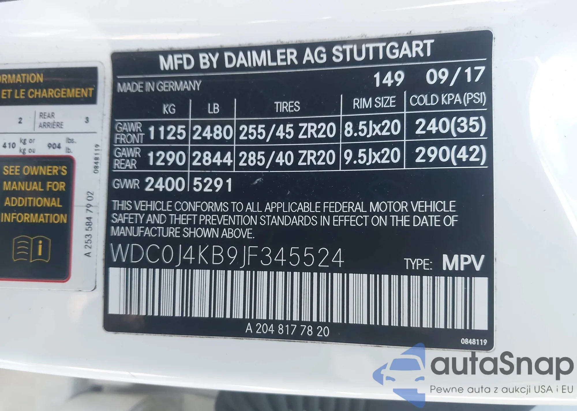• VIN WDC0J4KB9JF345524