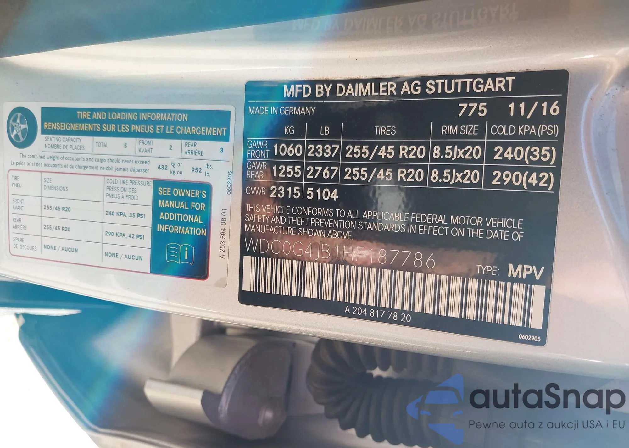 • VIN W1N0G8DB8LF827485