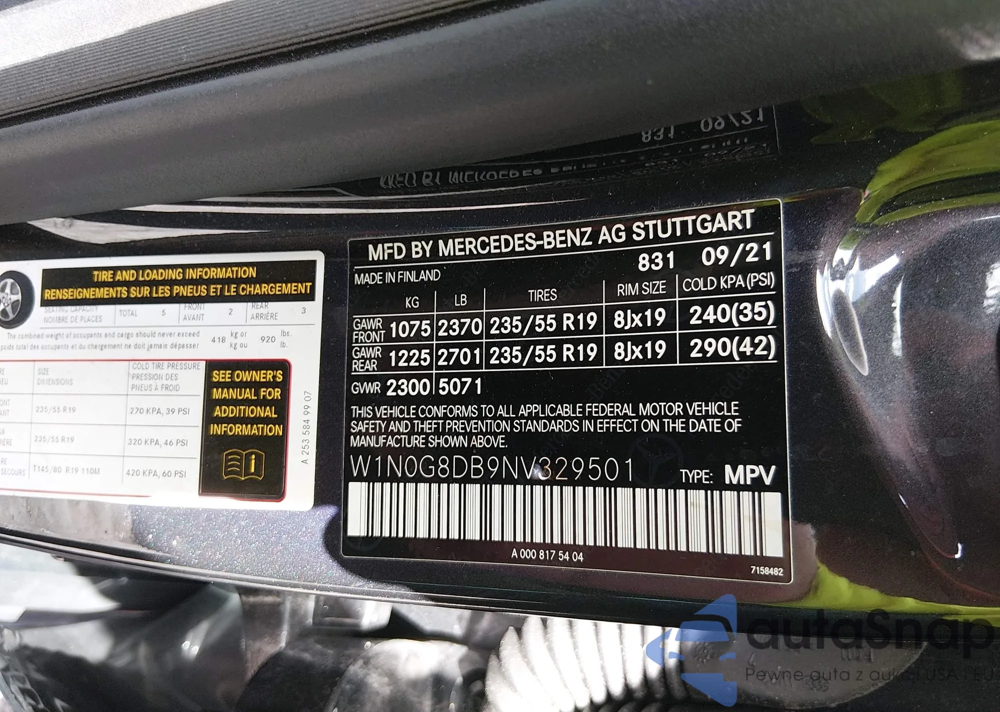 • VIN W1N0G8DB9NV329501