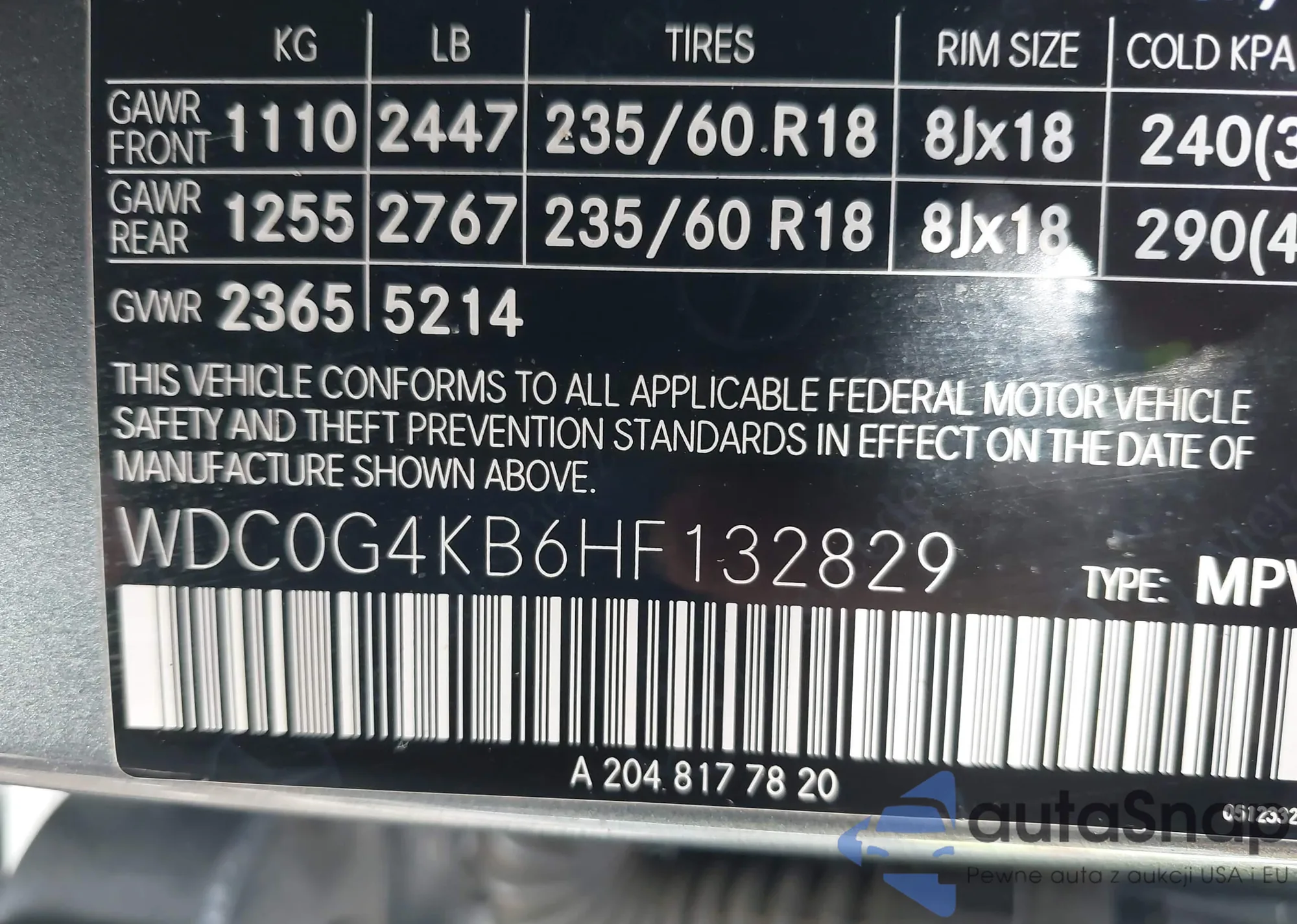 • VIN WDC0G4KB6HF132829
