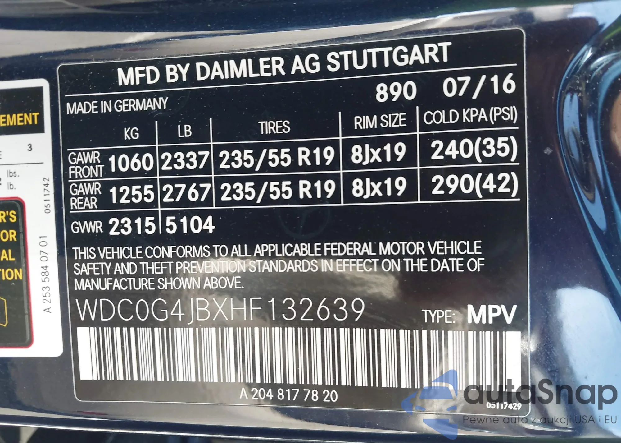• VIN WDC0G4KB0HF153417