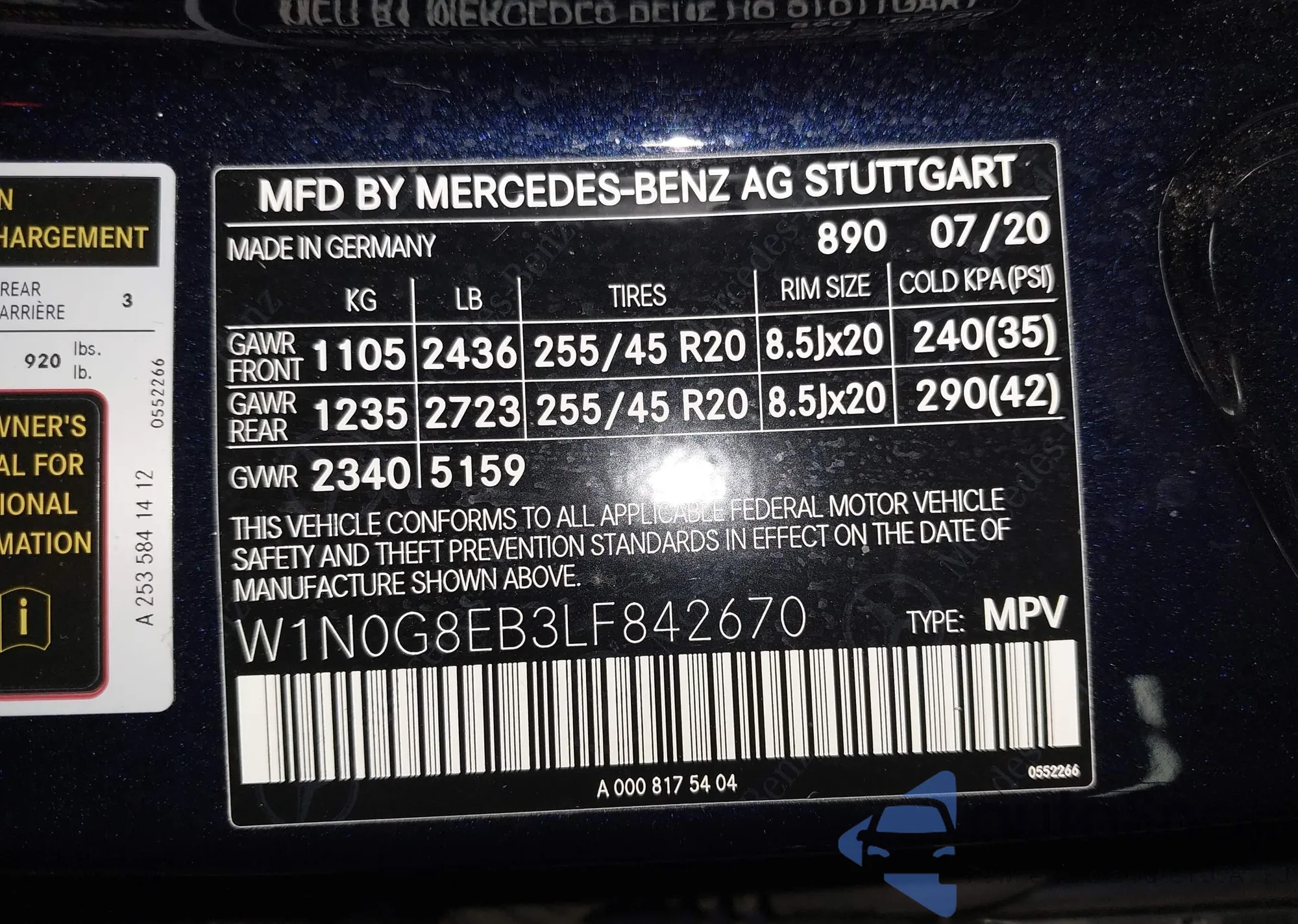 • VIN W1N0G8EB3LF842670