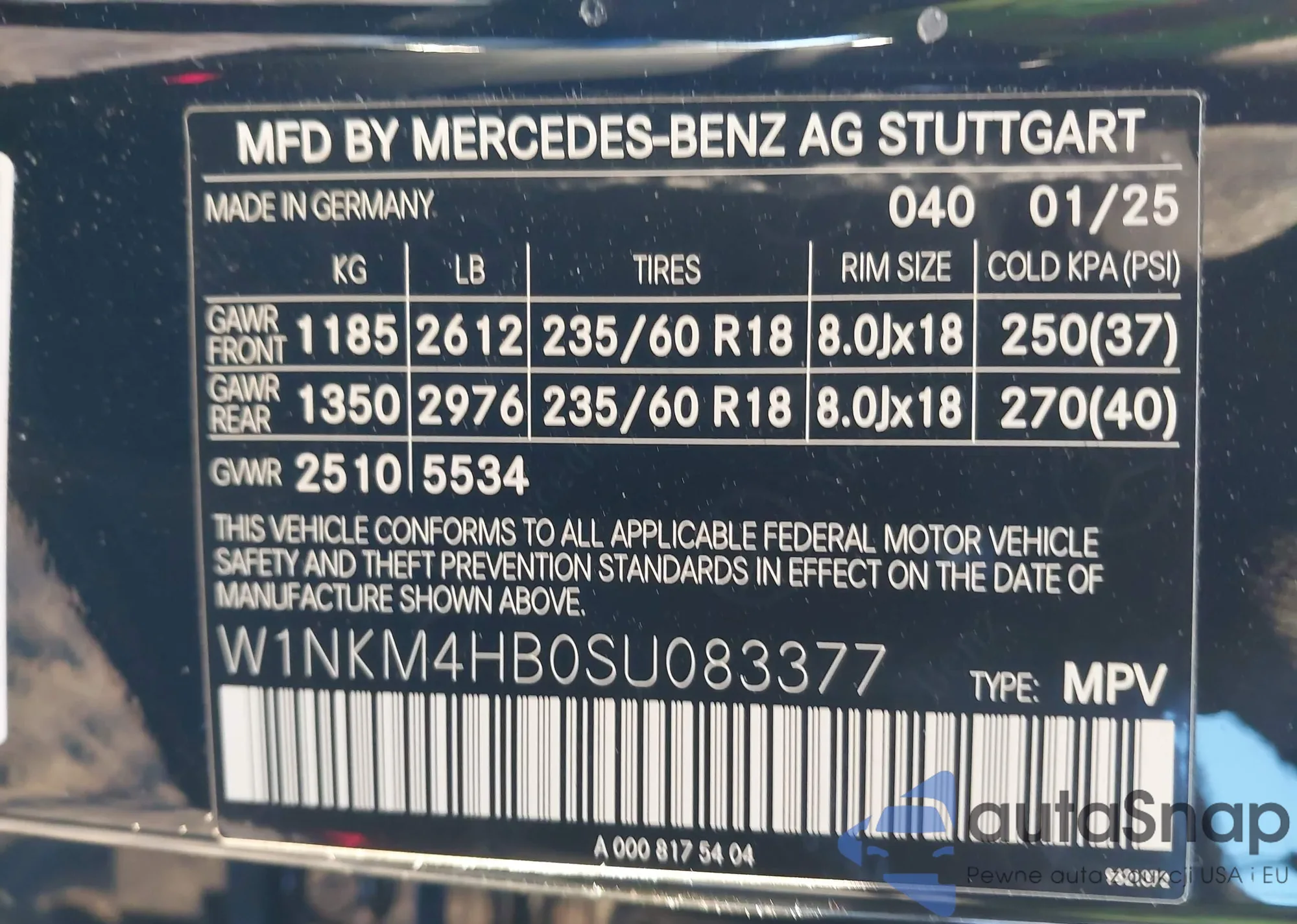 • VIN W1NKM4HB0SU083377