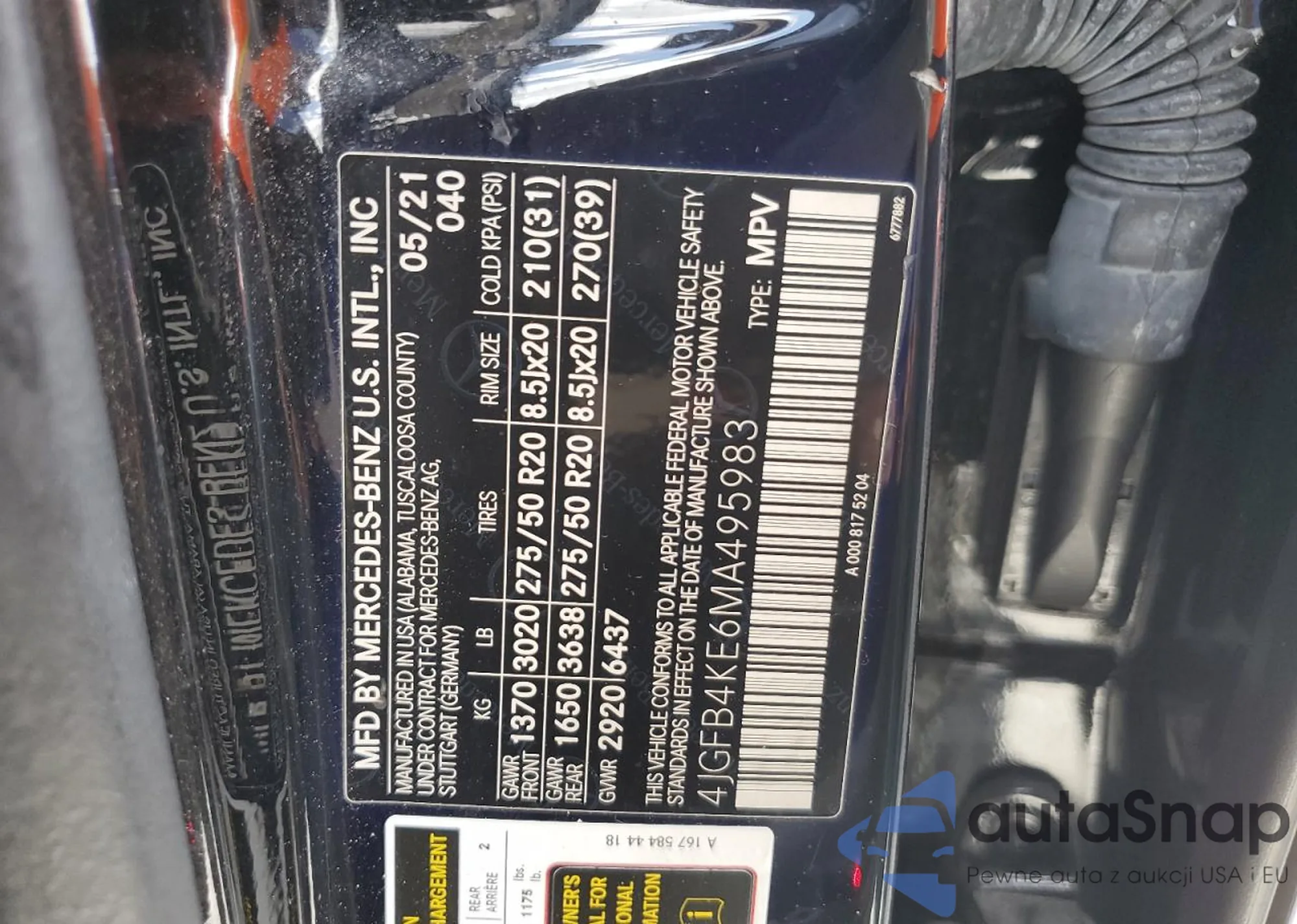 • VIN 4JGFB4KE6MA495983