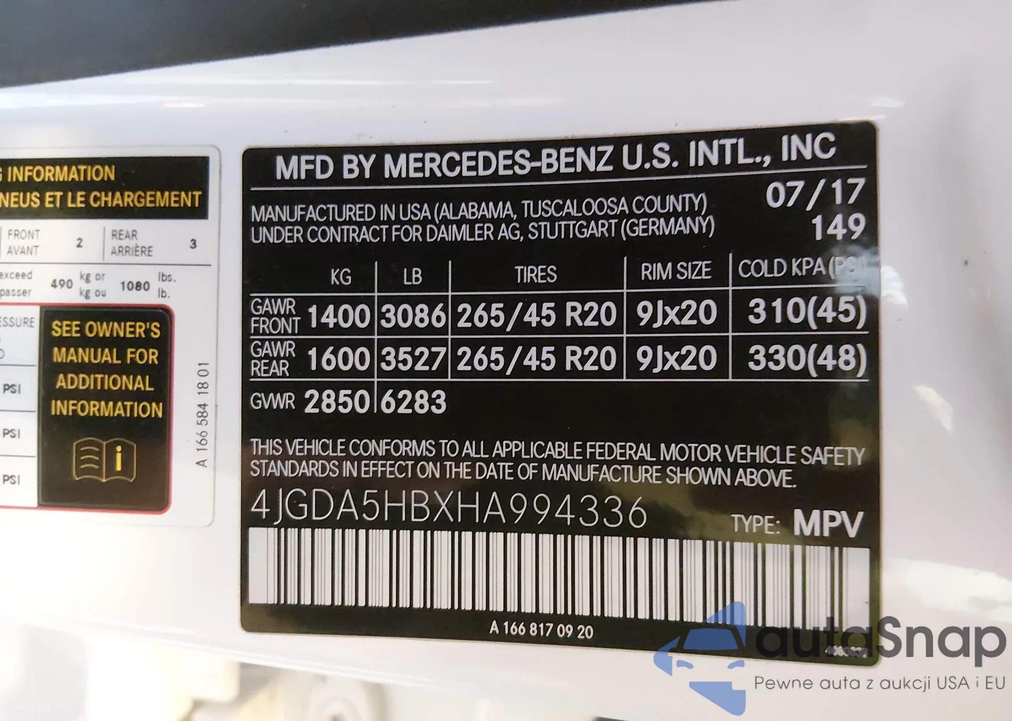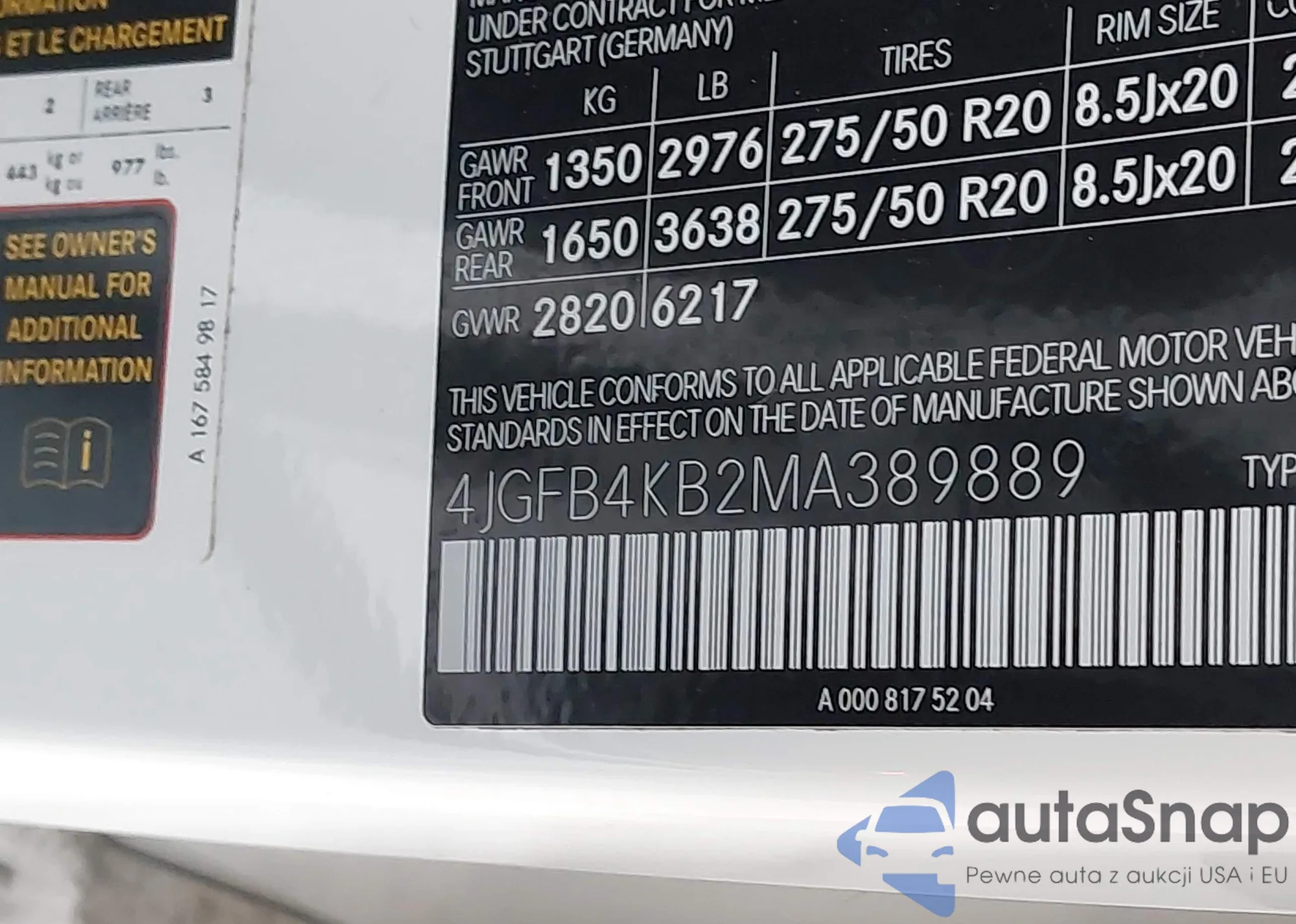 • VIN 4JGFB4KB2MA389889