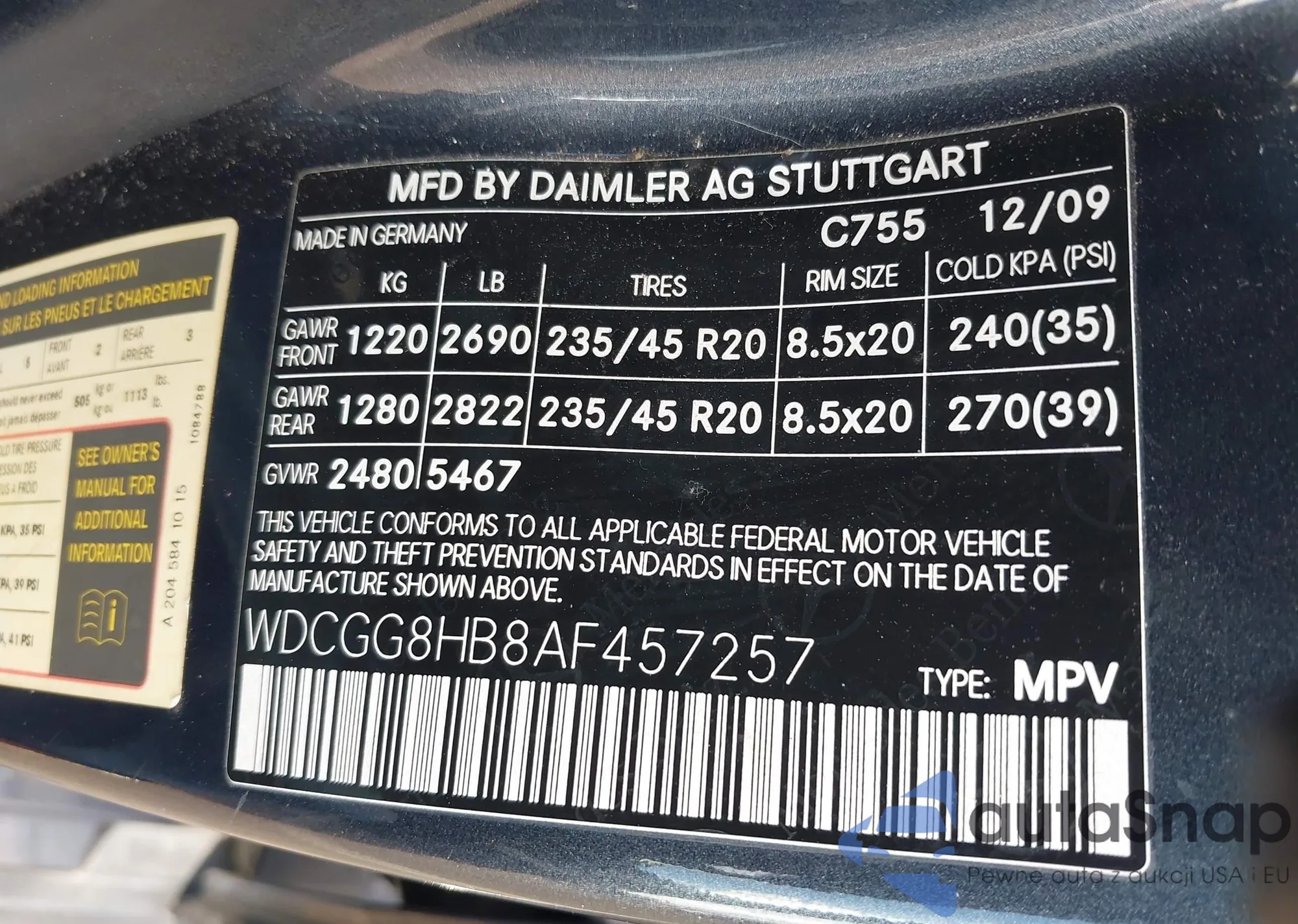 • VIN WDCGG8HB8AF457257