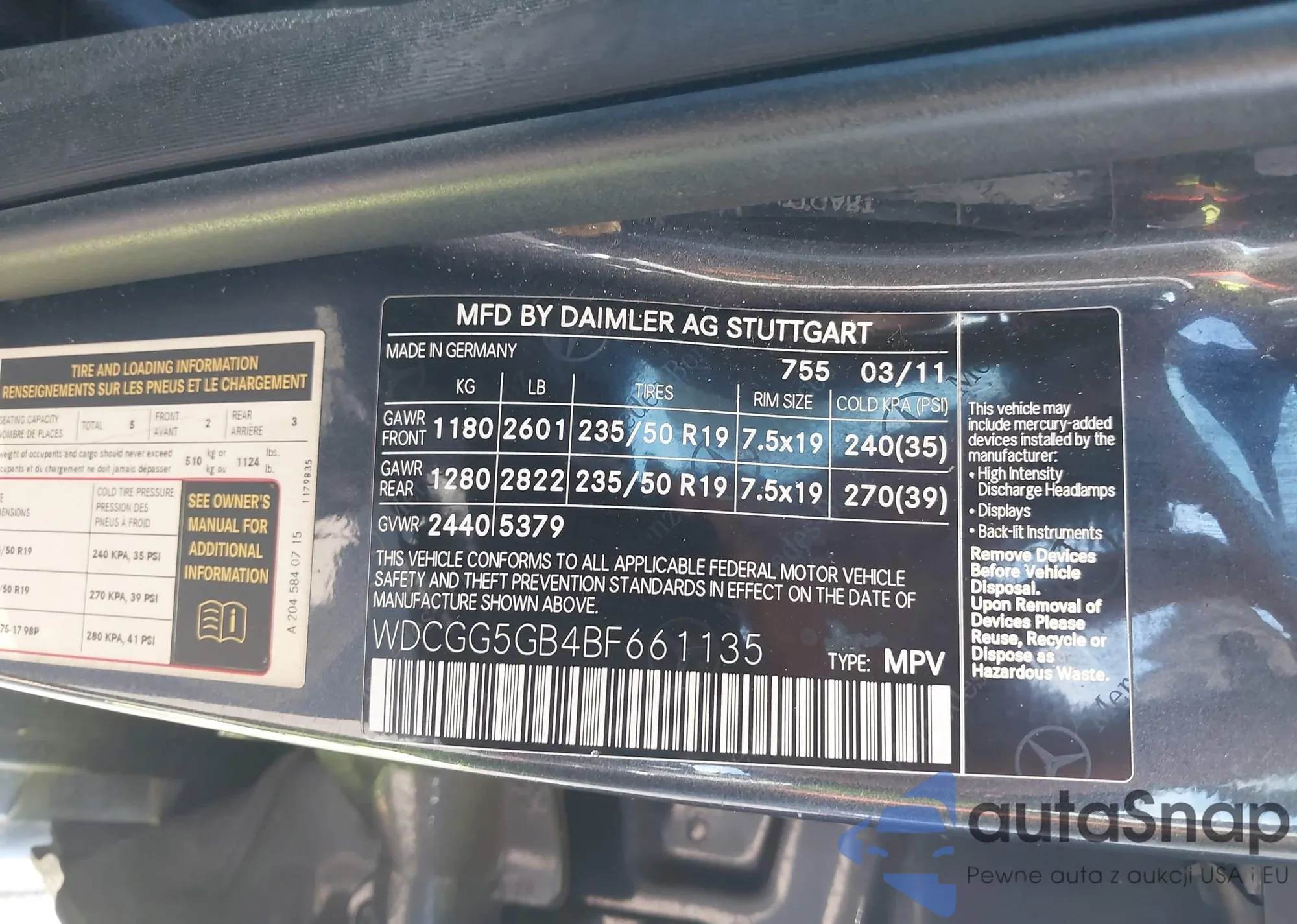• VIN WDCGG8HB0BF575739