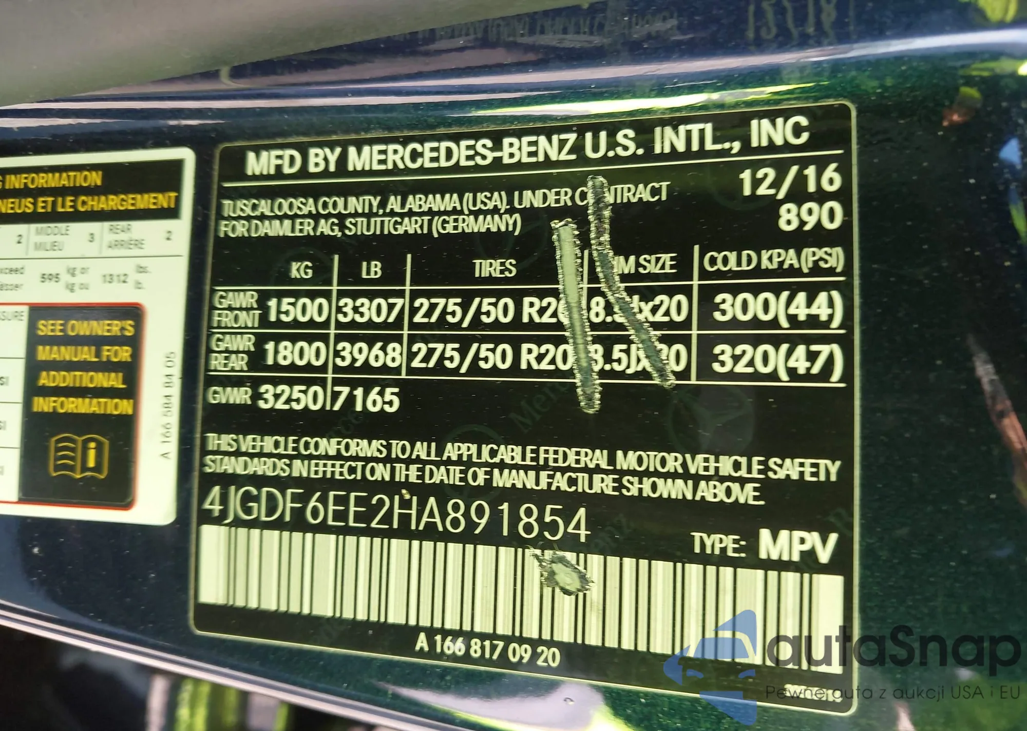 • VIN 4JGDF6EE2HA891854