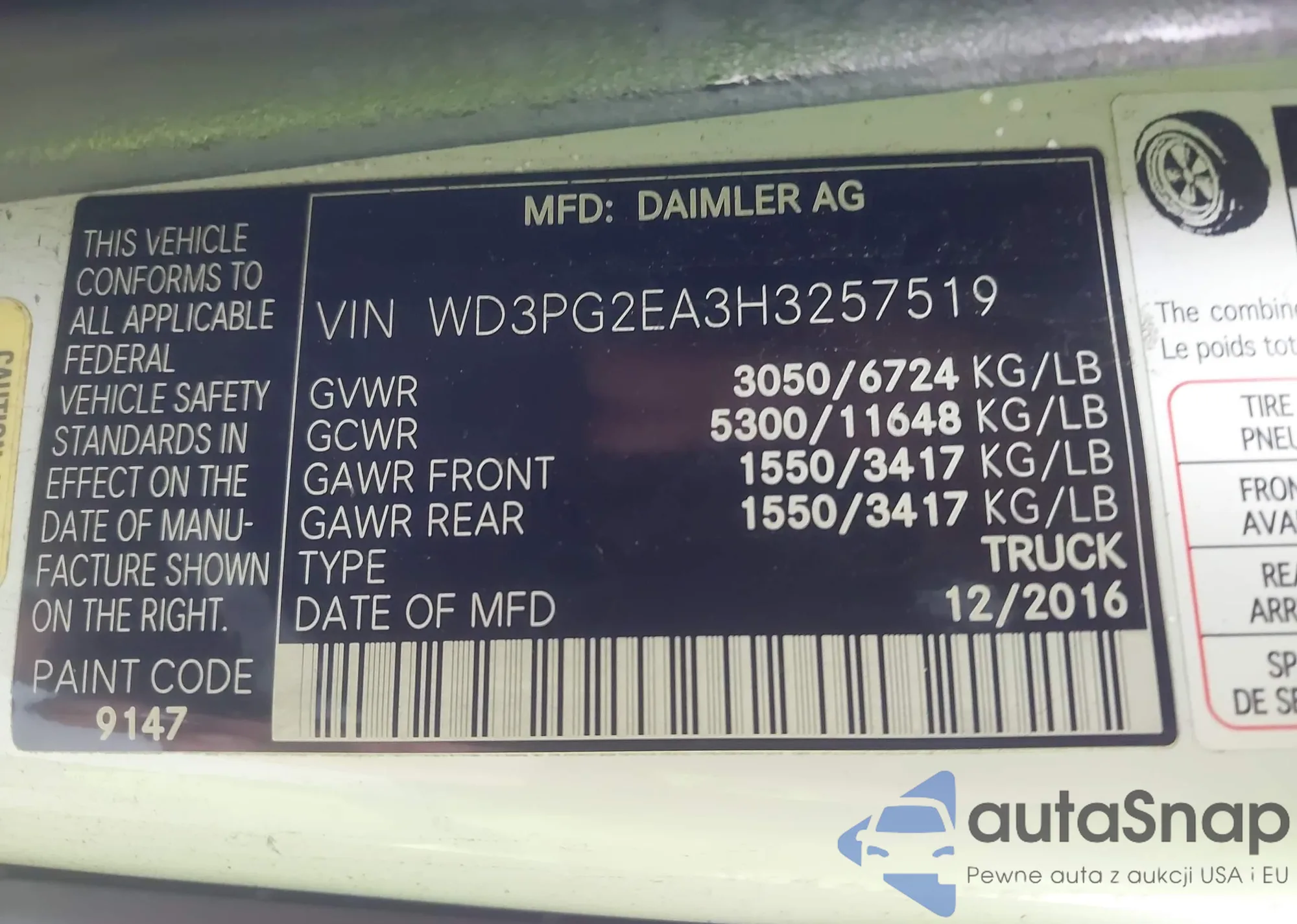 LOT: 44014345 VIN: WD3PG2EA3H3257519