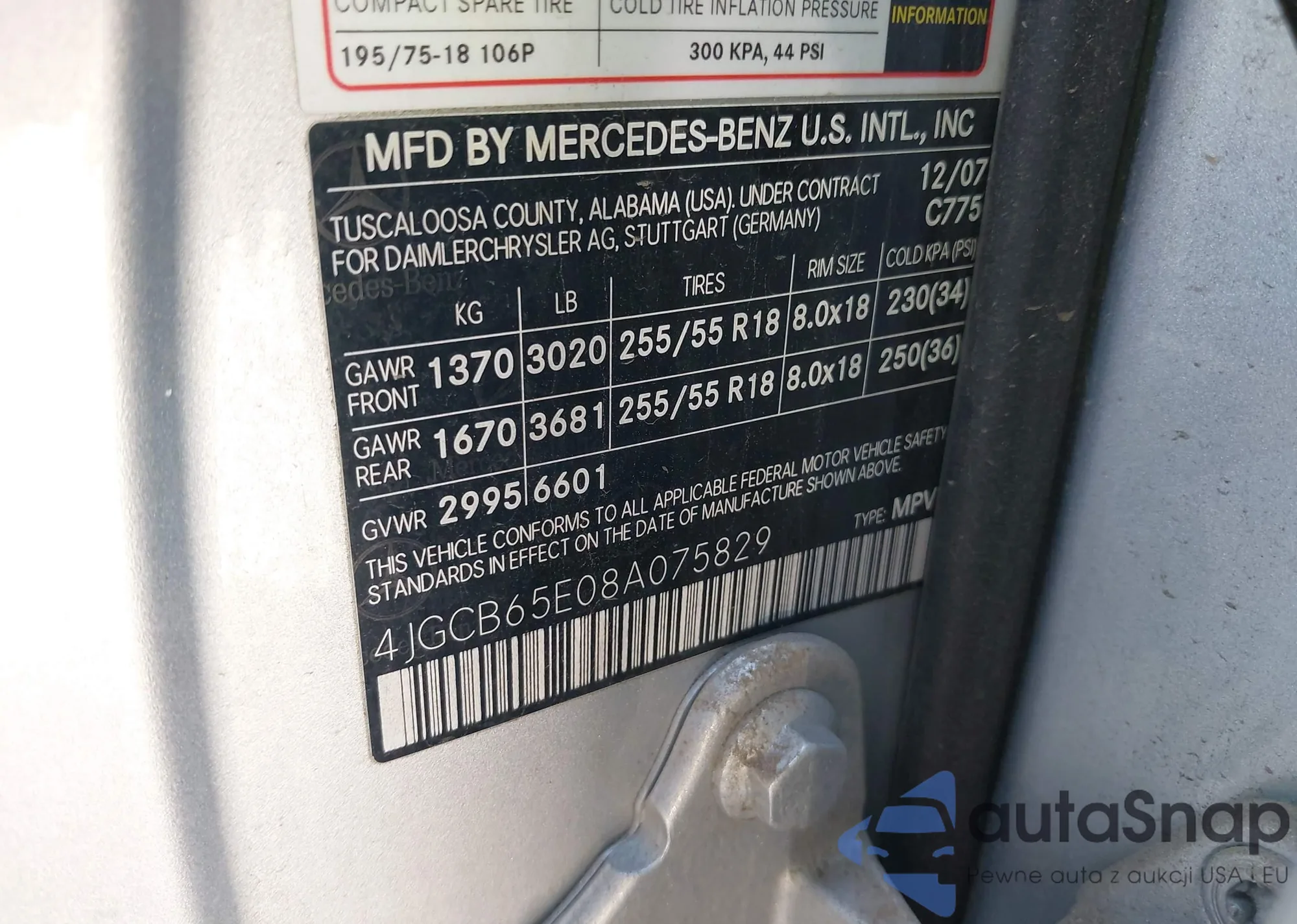 • VIN 4JGCB65E08A075829