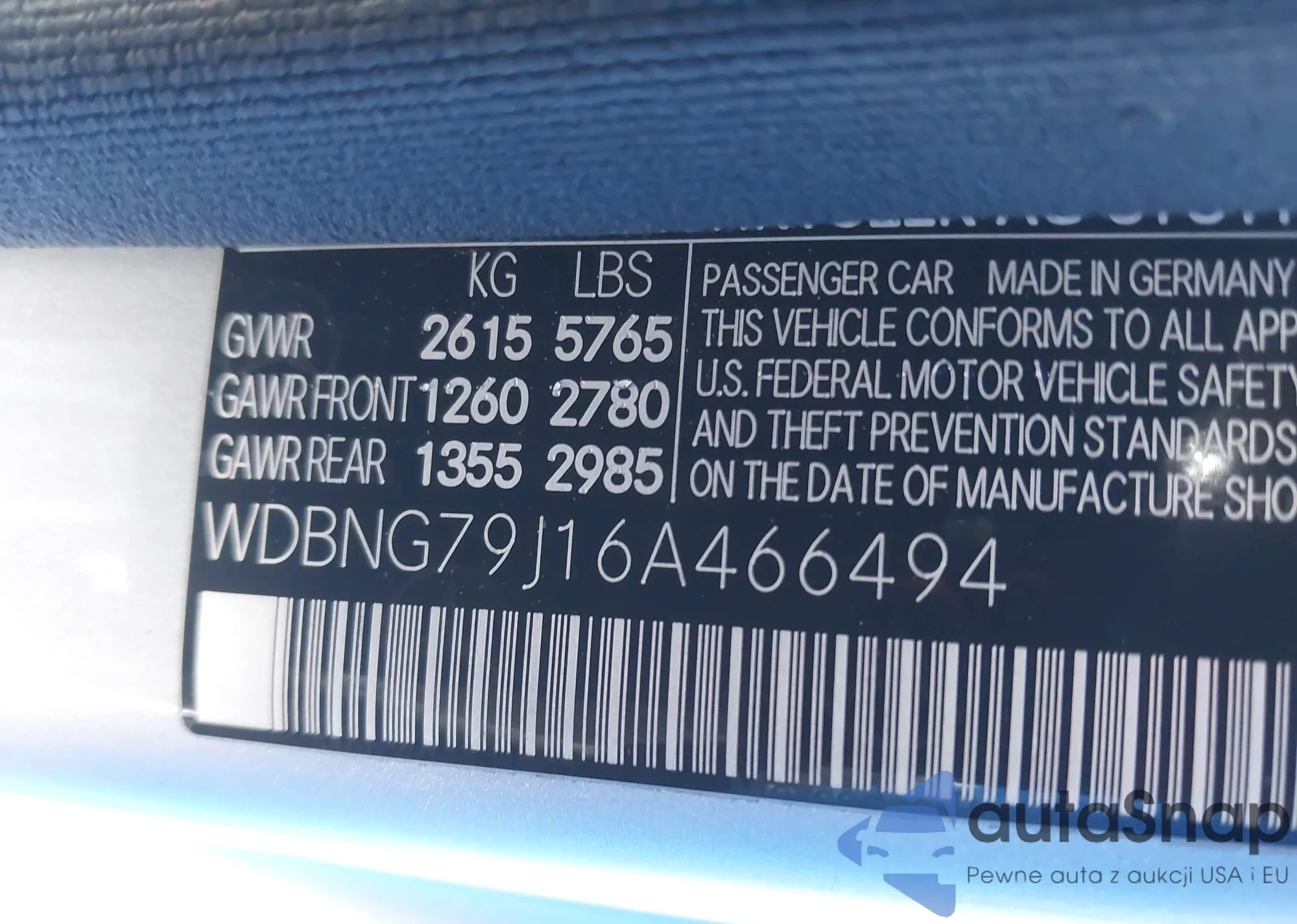 • VIN WDBNG79J16A466494