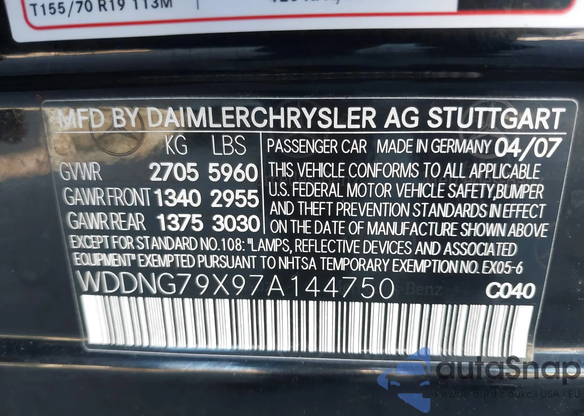 LOT: 44170070 VIN: WDDNG79X97A144750