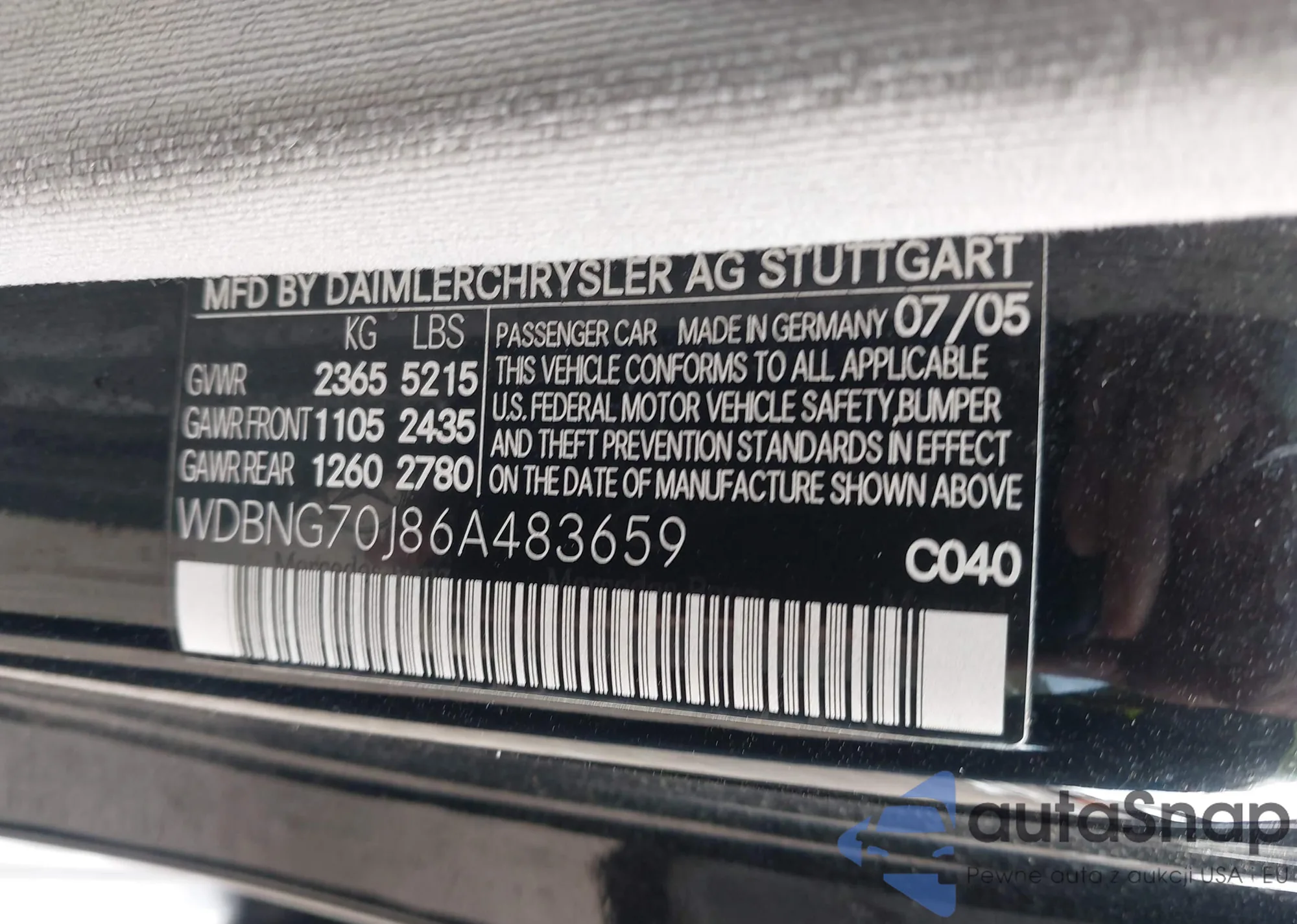 • VIN WDBNG70J86A483659