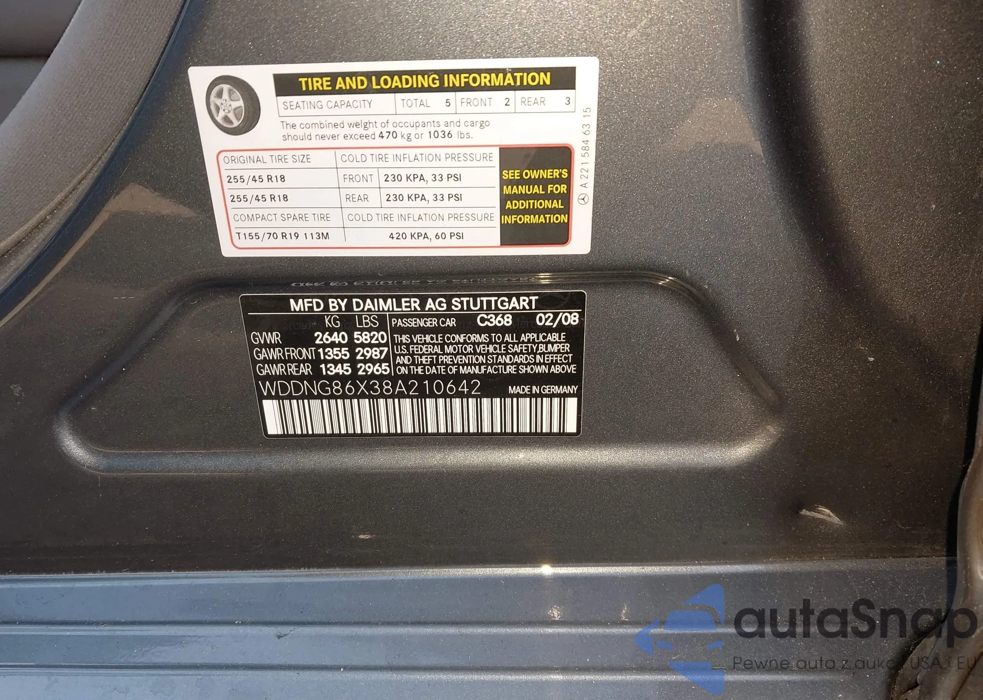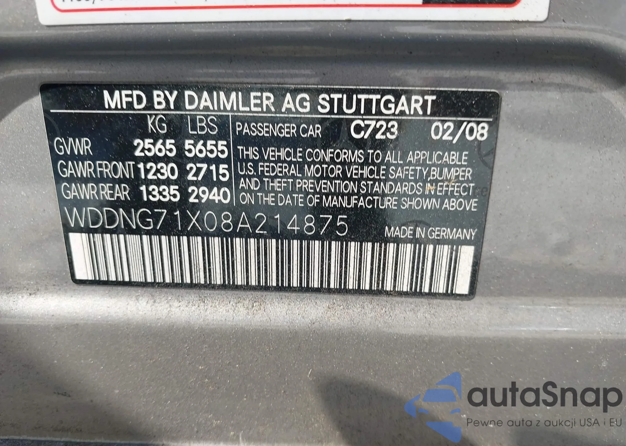 LOT: 44120799 VIN: WDDNG86X38A210642