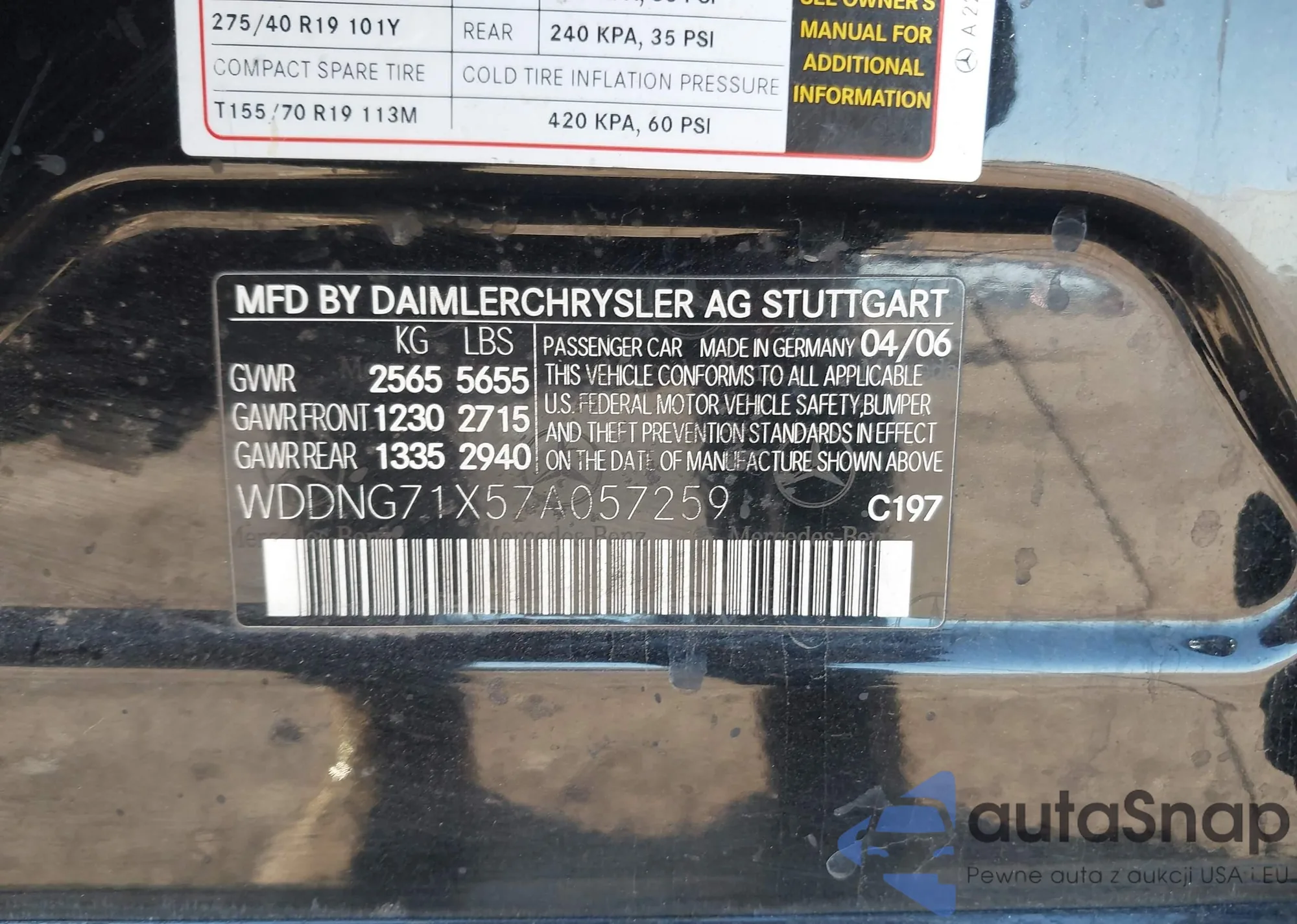 LOT: 44295068 VIN: WDDNG71X57A057259