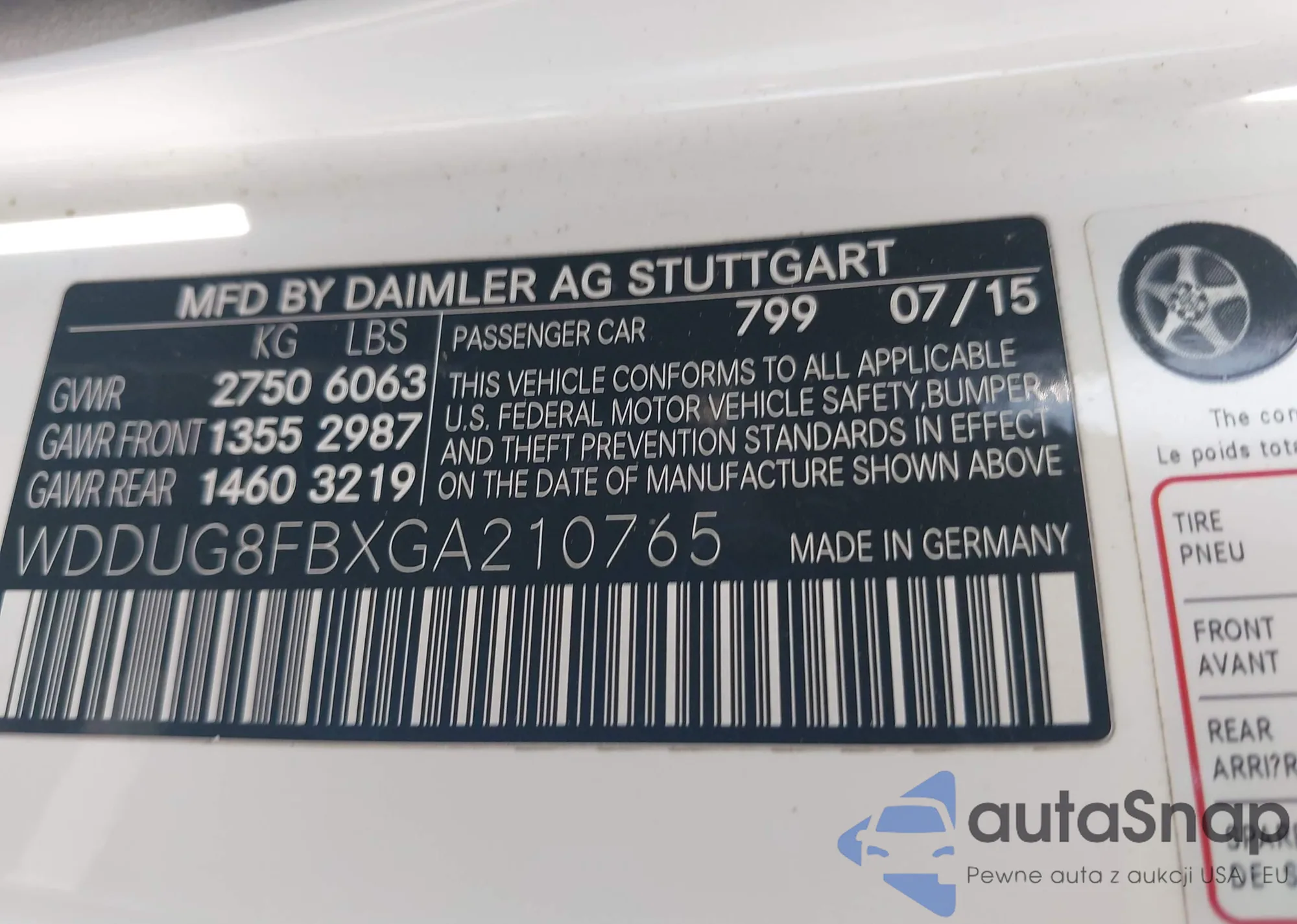 • VIN WDDUG8FBXGA210765