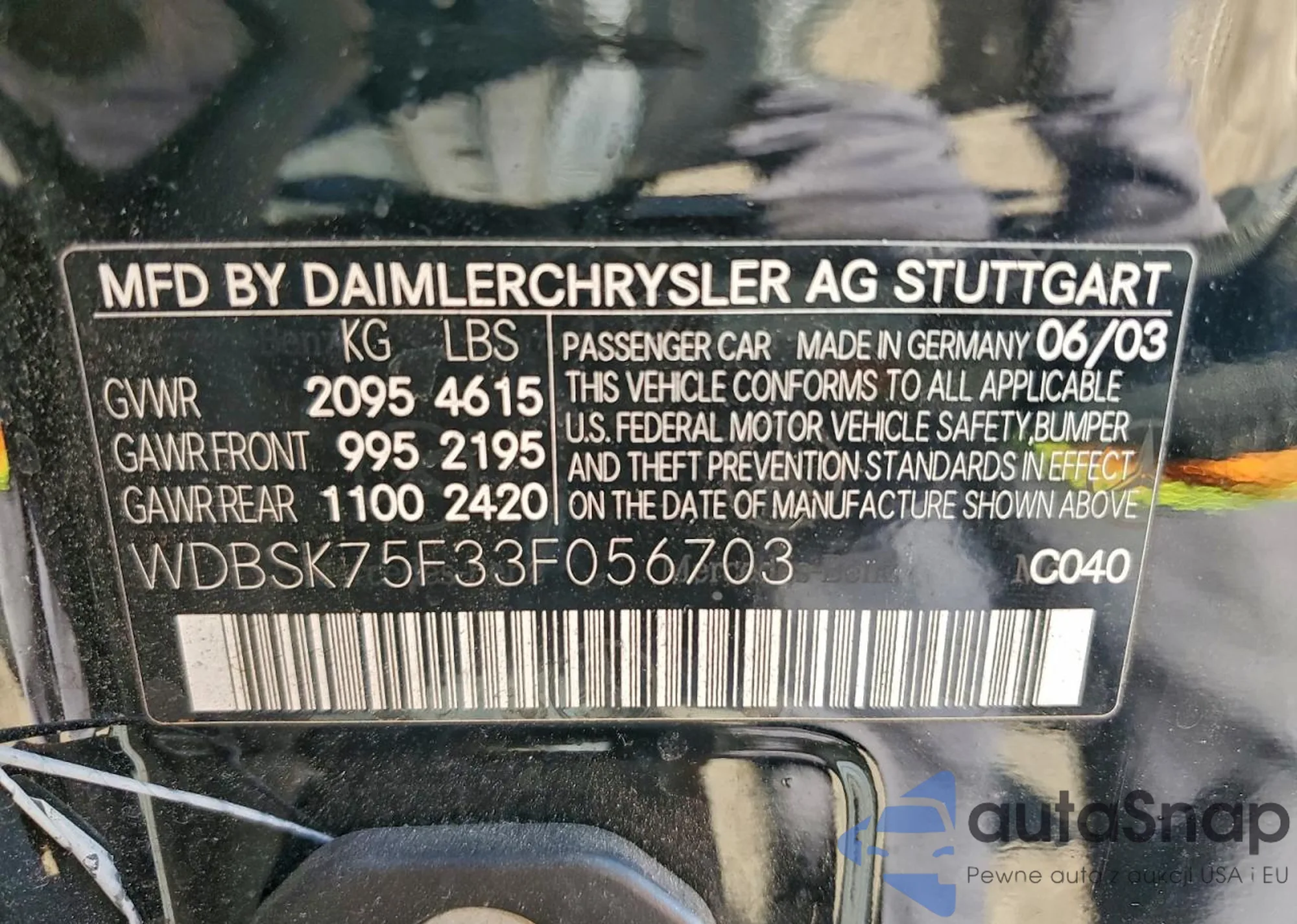 • VIN WDBSK75F33F056703