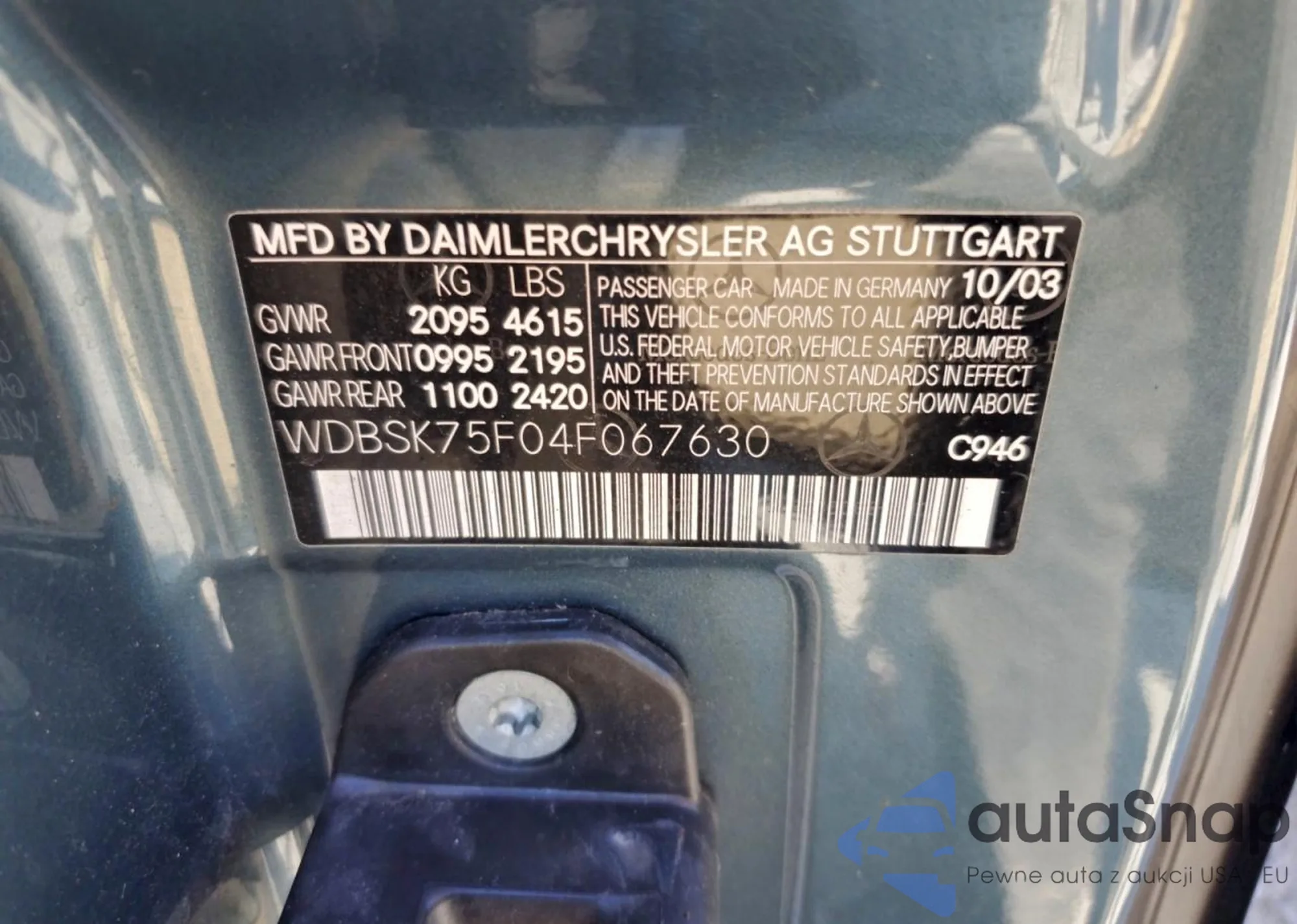 • VIN WDBSK75F04F067630