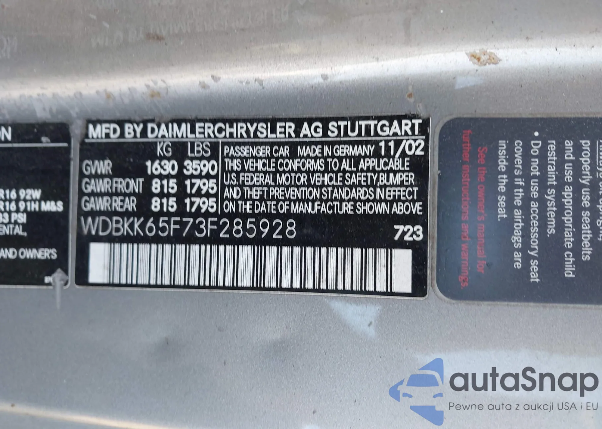 • VIN WDBKK65F73F285928