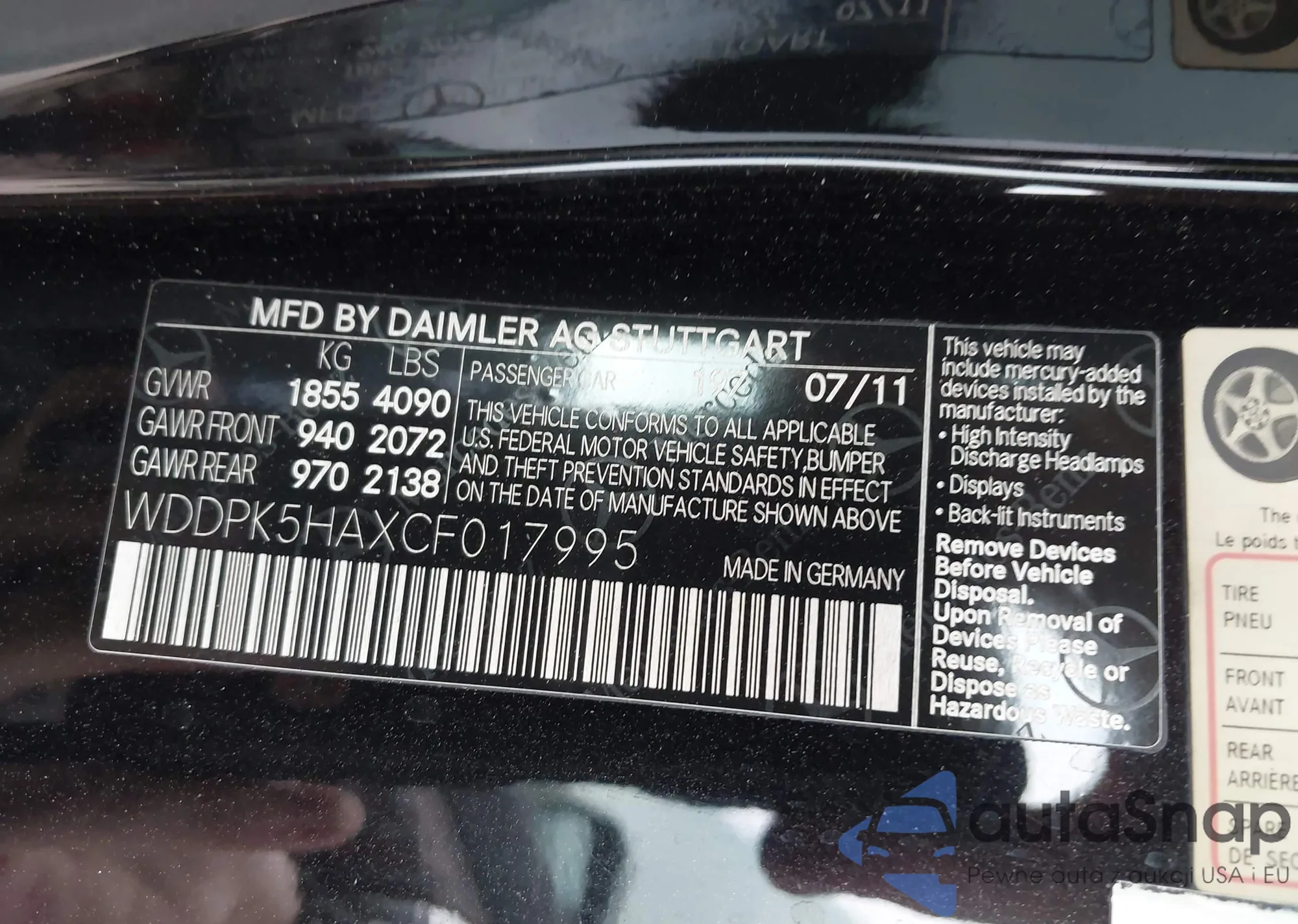 Kup Mercedes-Benz SLK-klasse III (R172) z USA