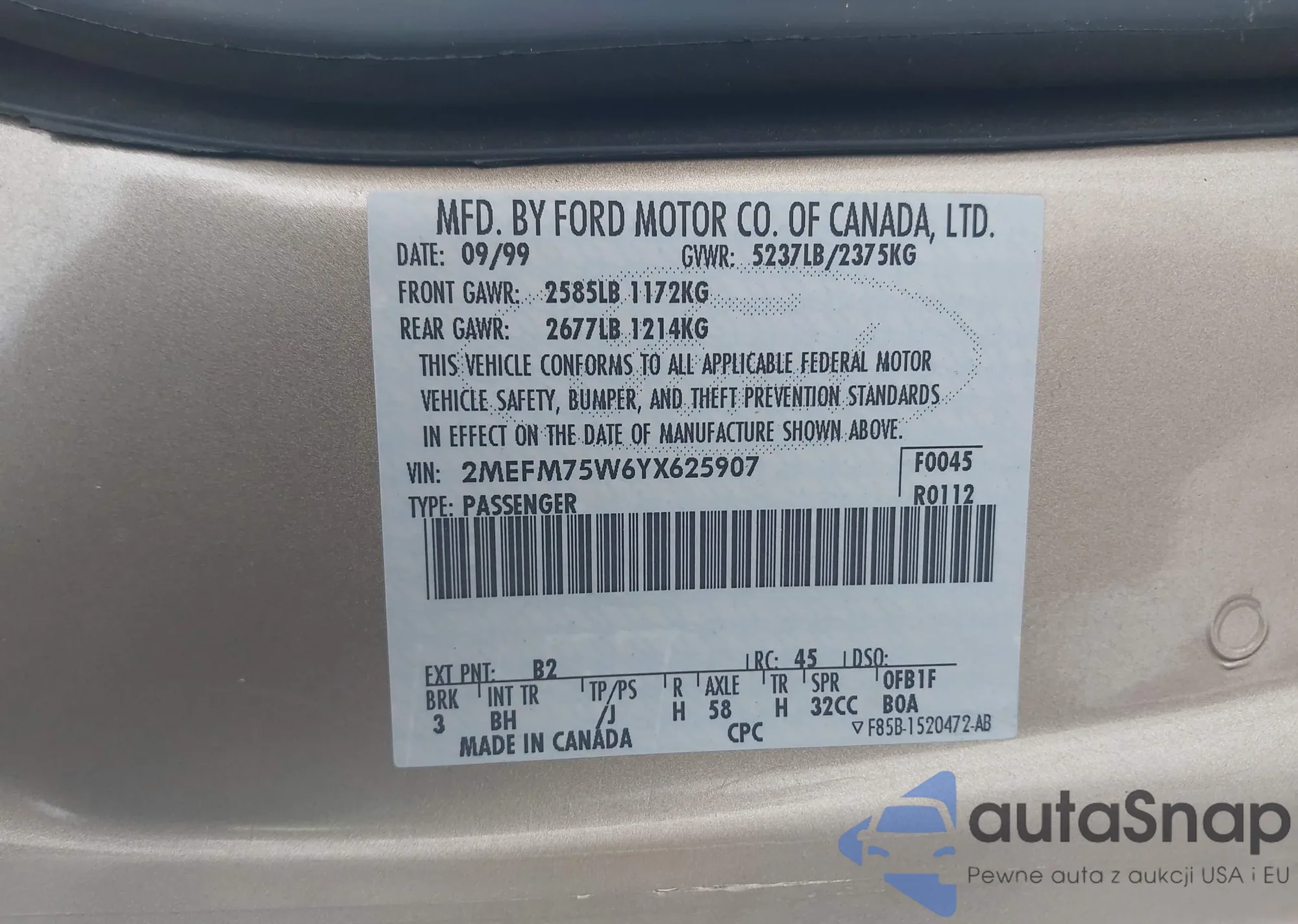 • VIN 2MEFM75W6YX625907