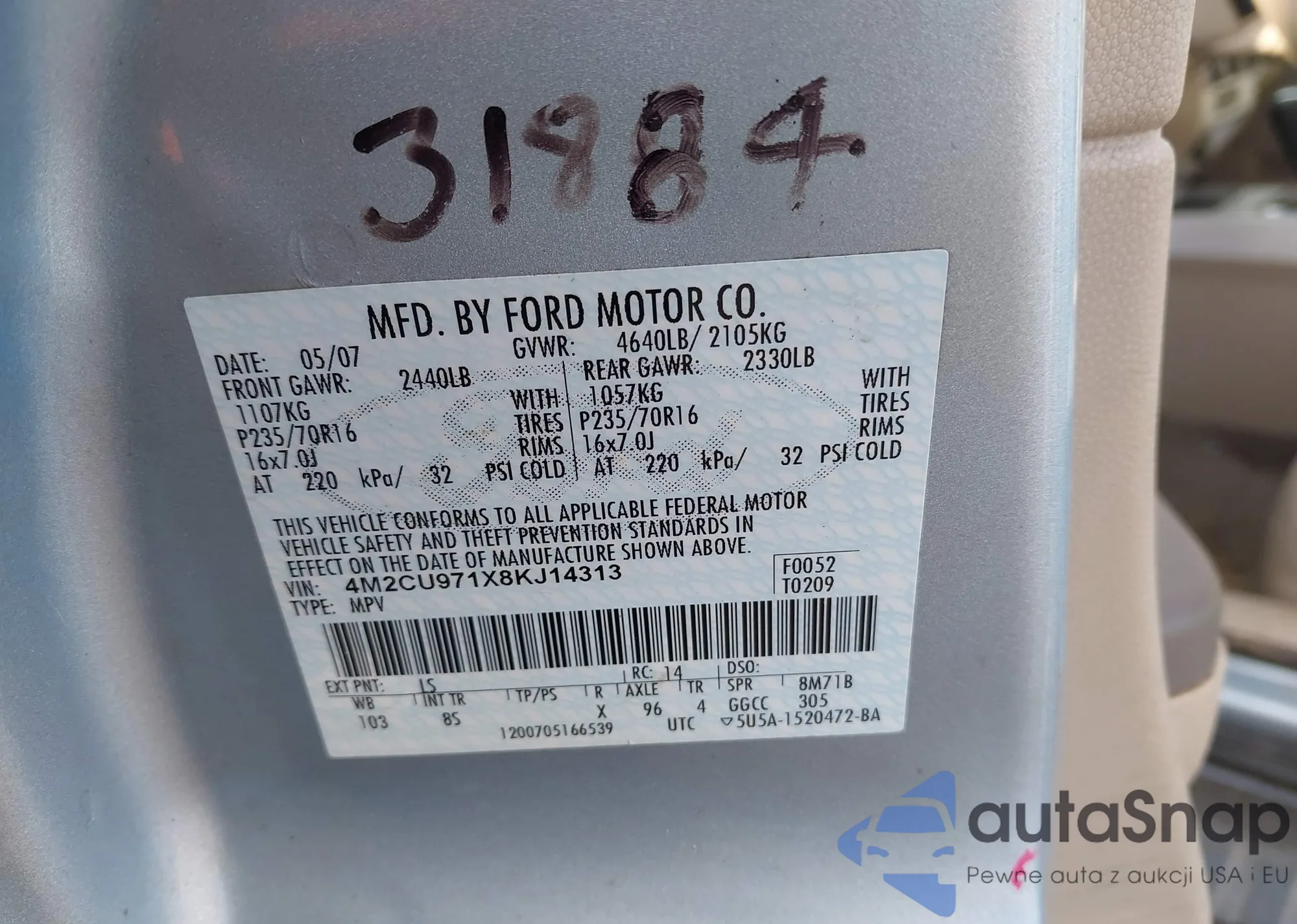 • VIN 4M2CU971X8KJ14313