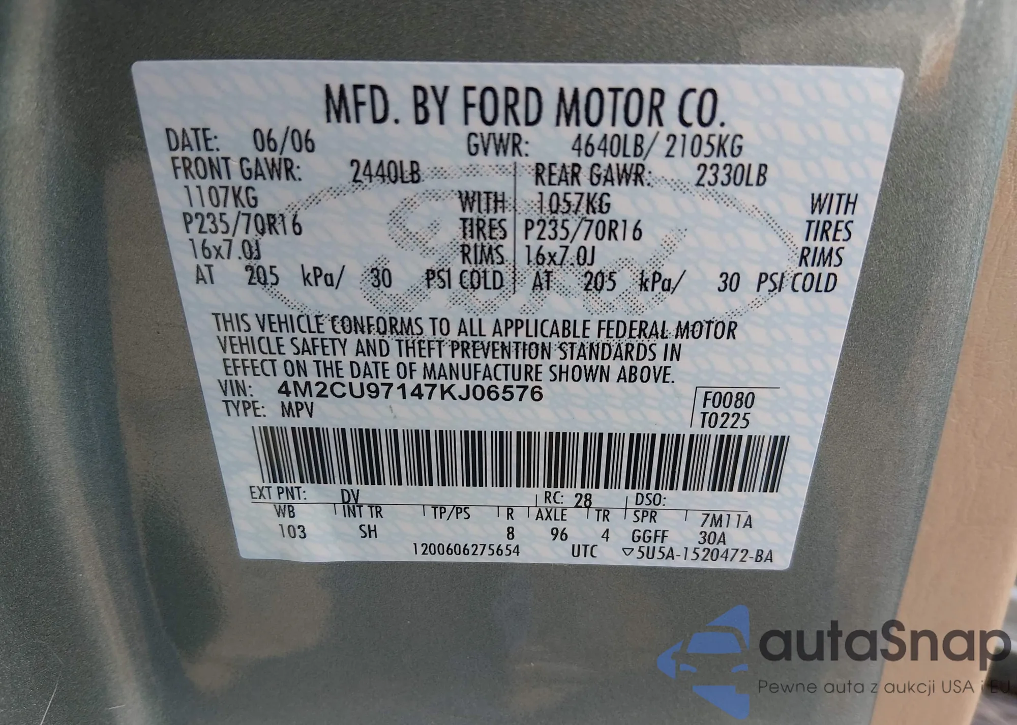 • VIN 4M2CU97147KJ06576