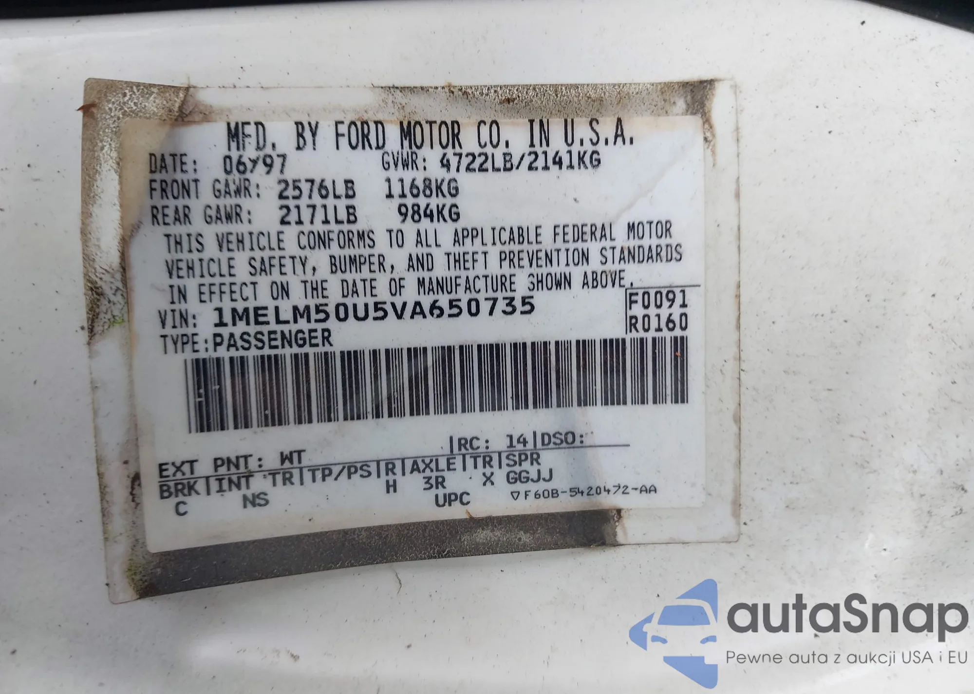 LOT: 44624512 VIN: 1MELM50U5VA650735