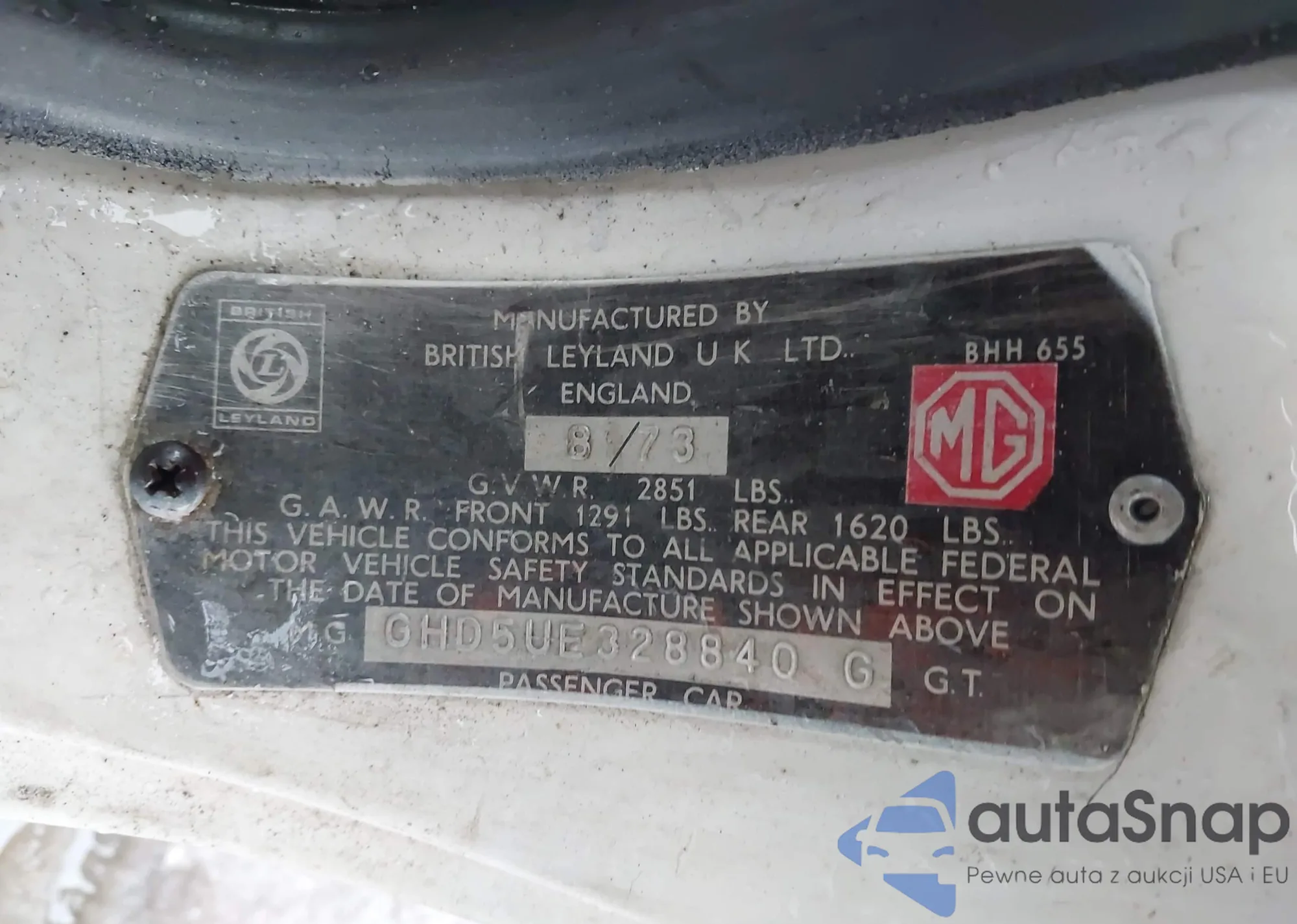 1974 Mg Mgb z USA, uszkodzony, nr VIN GHD5UE3288406