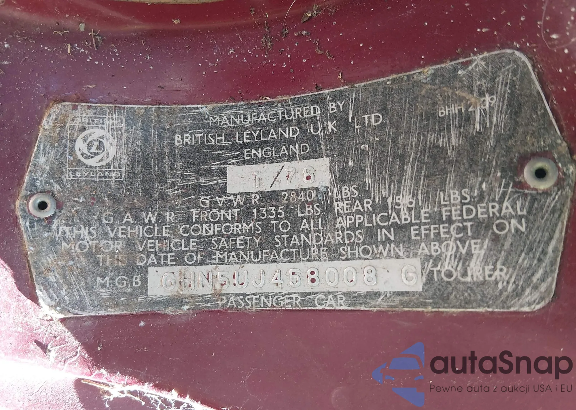 1978 Mg Mgb z USA, uszkodzony, nr VIN GHN5UJ458008G