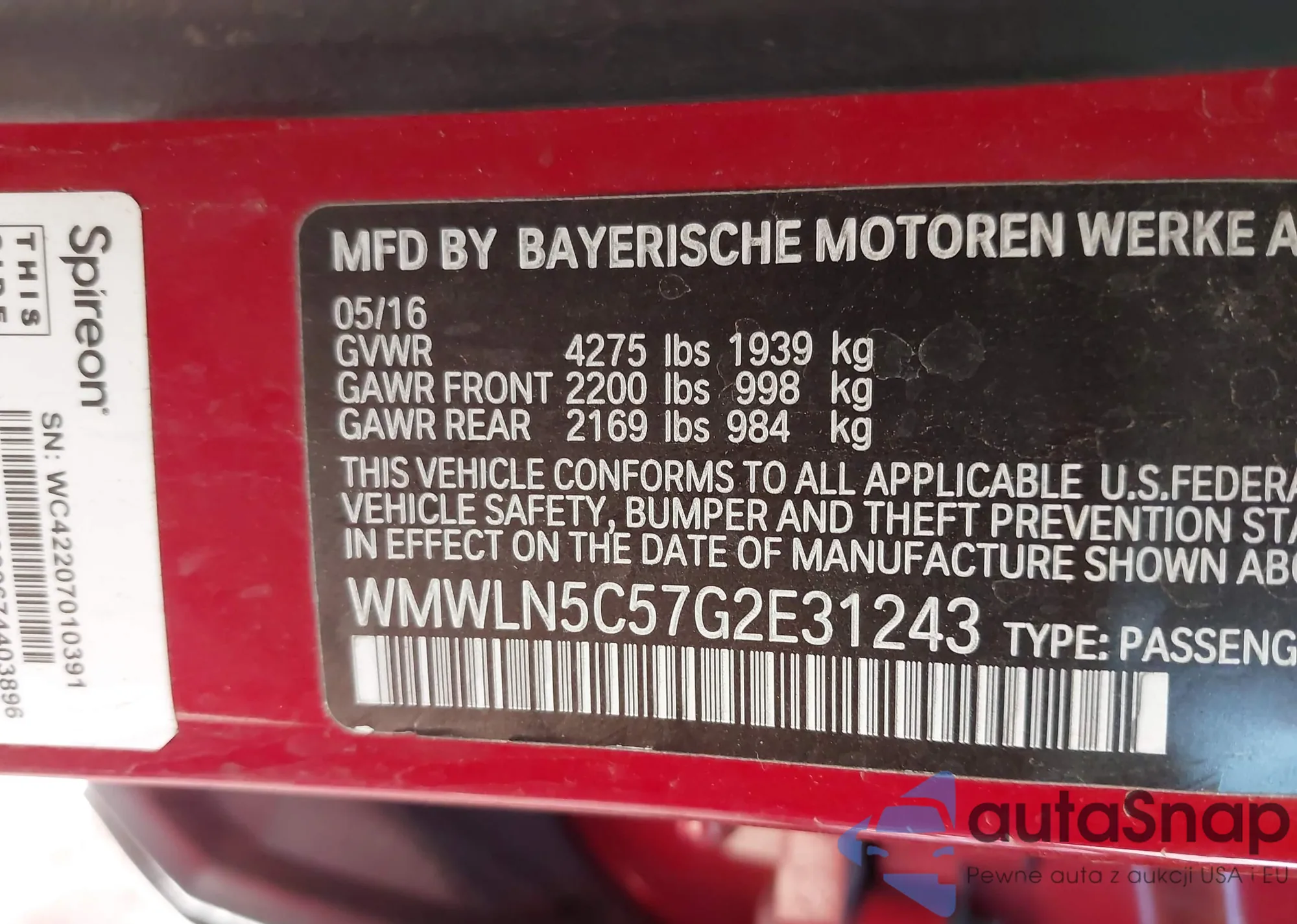 LOT: 44532029 VIN: WMWLN5C57G2E31243