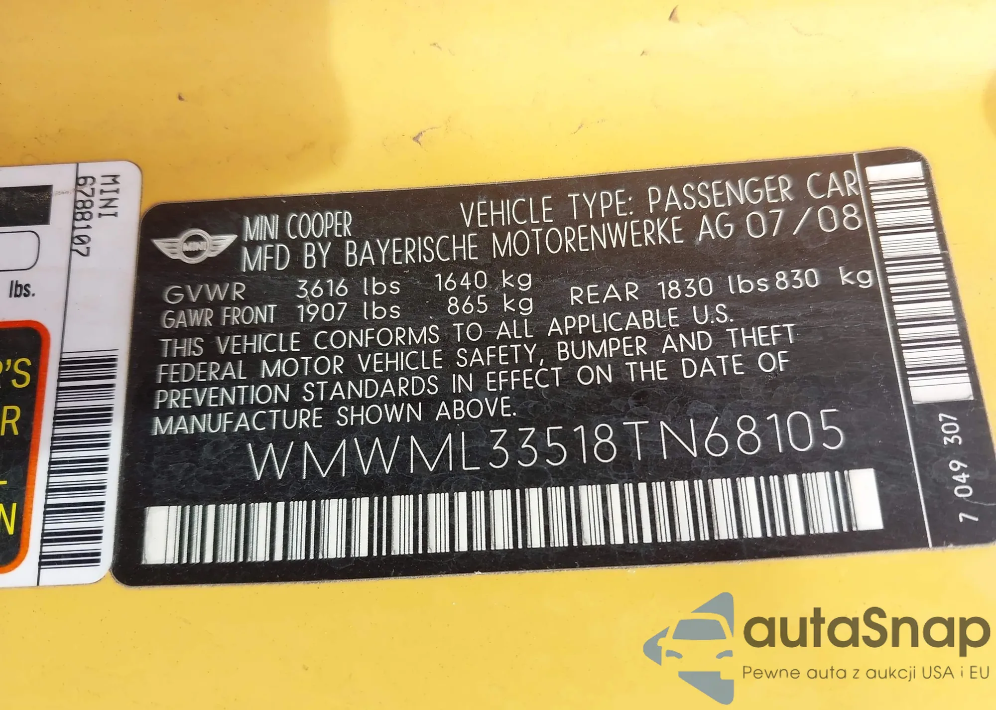 • VIN WMWML33518TN68105