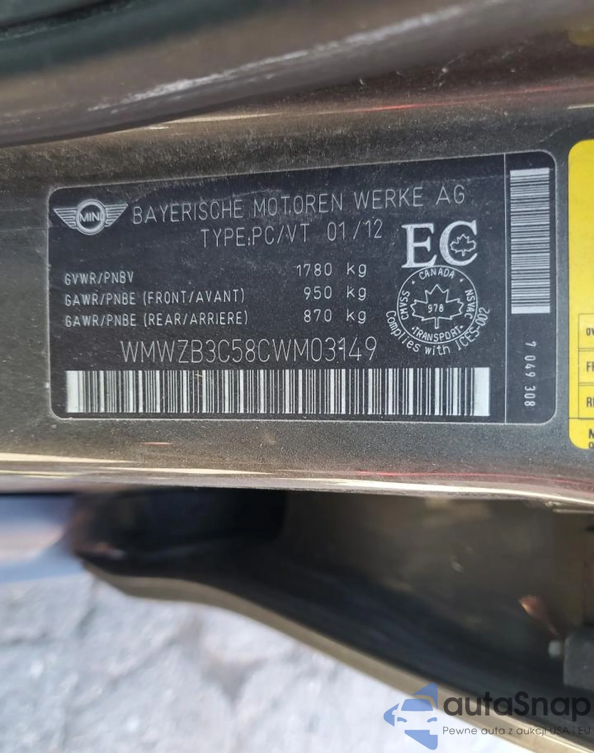• VIN WMWZB3C58CWM03149