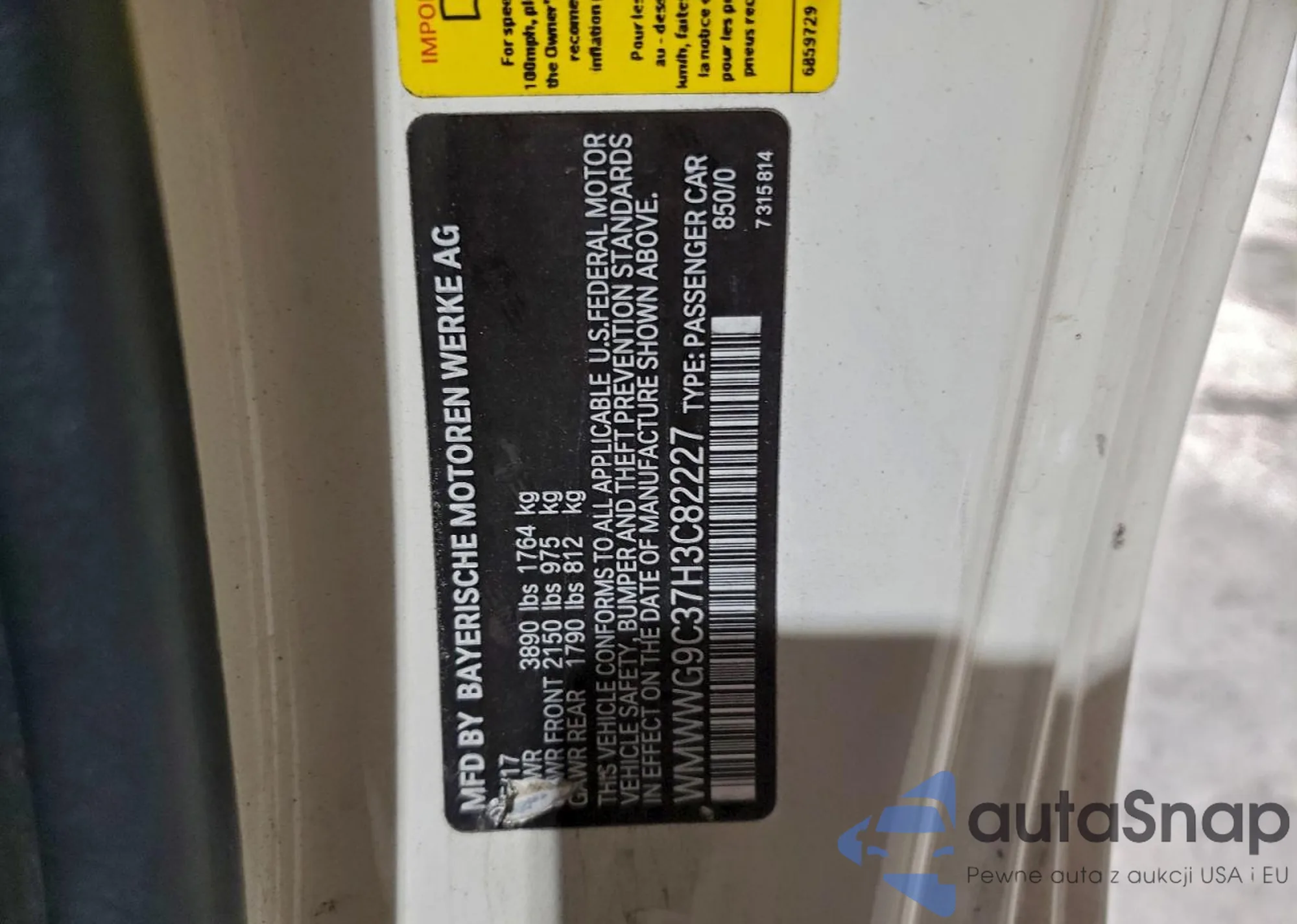 LOT: 81505375 VIN: WMWZB3C58CWM03149
