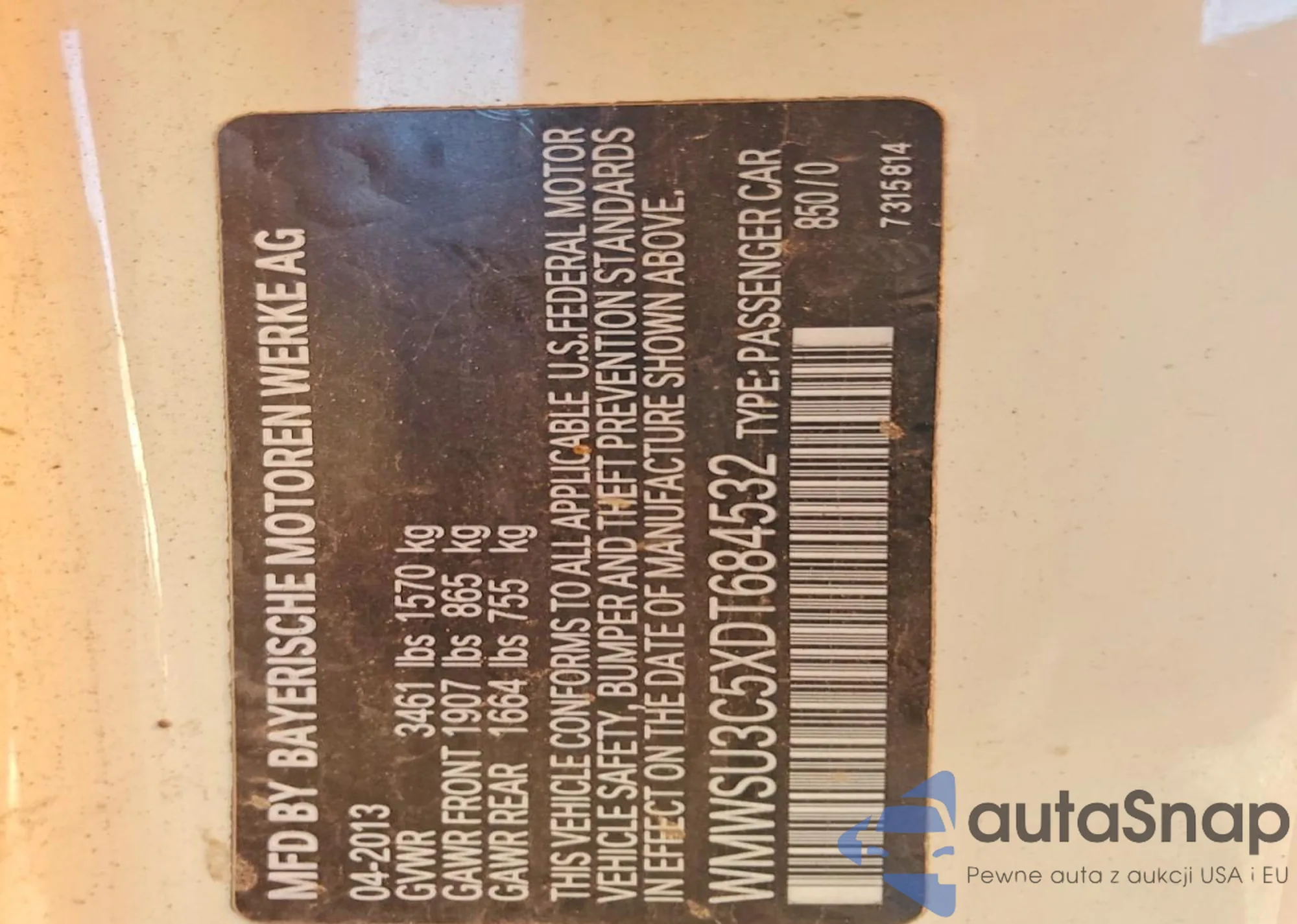 LOT: 76008915 VIN: WMWSU3C5XDT684532