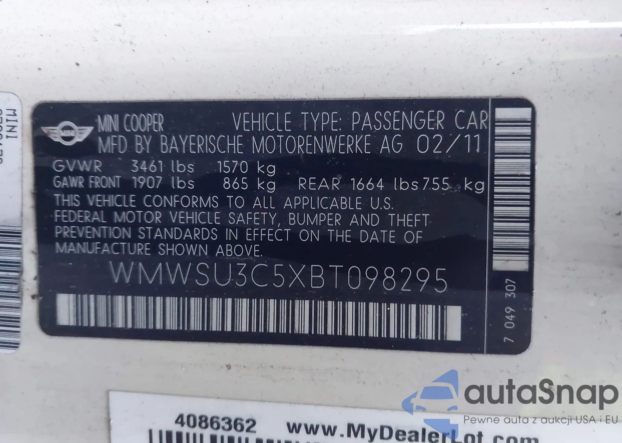 LOT: 44166198 VIN: WMWSU3C5XBT098295