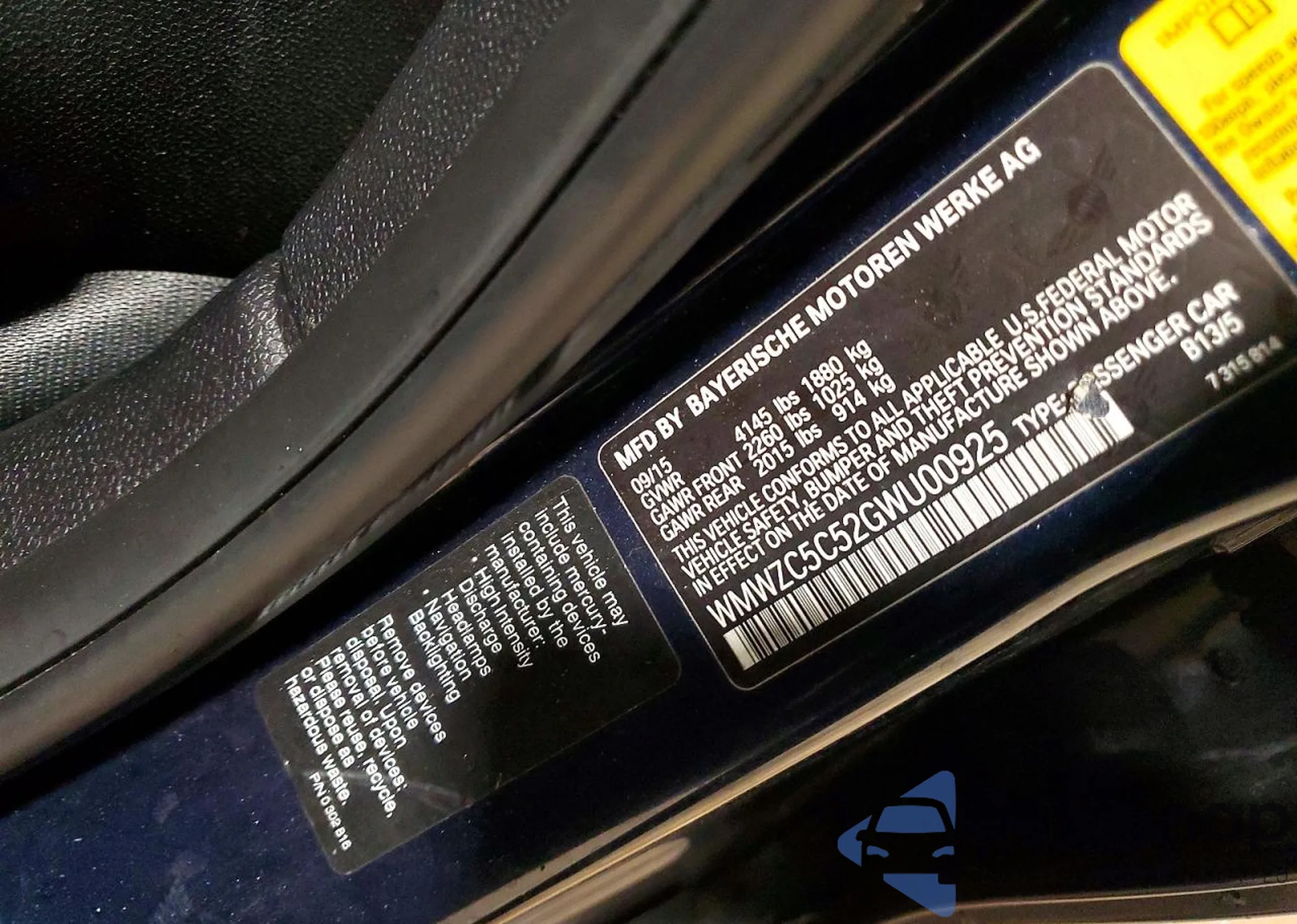 • VIN WMWXM5C57F3A56970