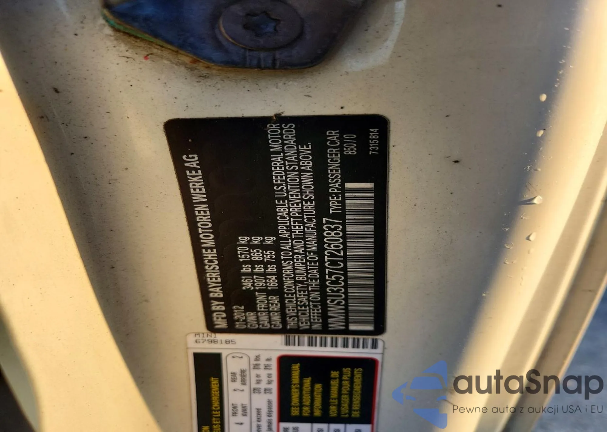 • VIN WMWSU3C57CT260837