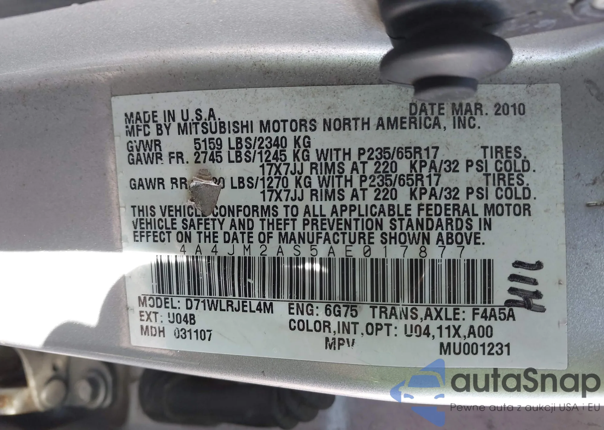• VIN 4A4JM2AS5AE017877