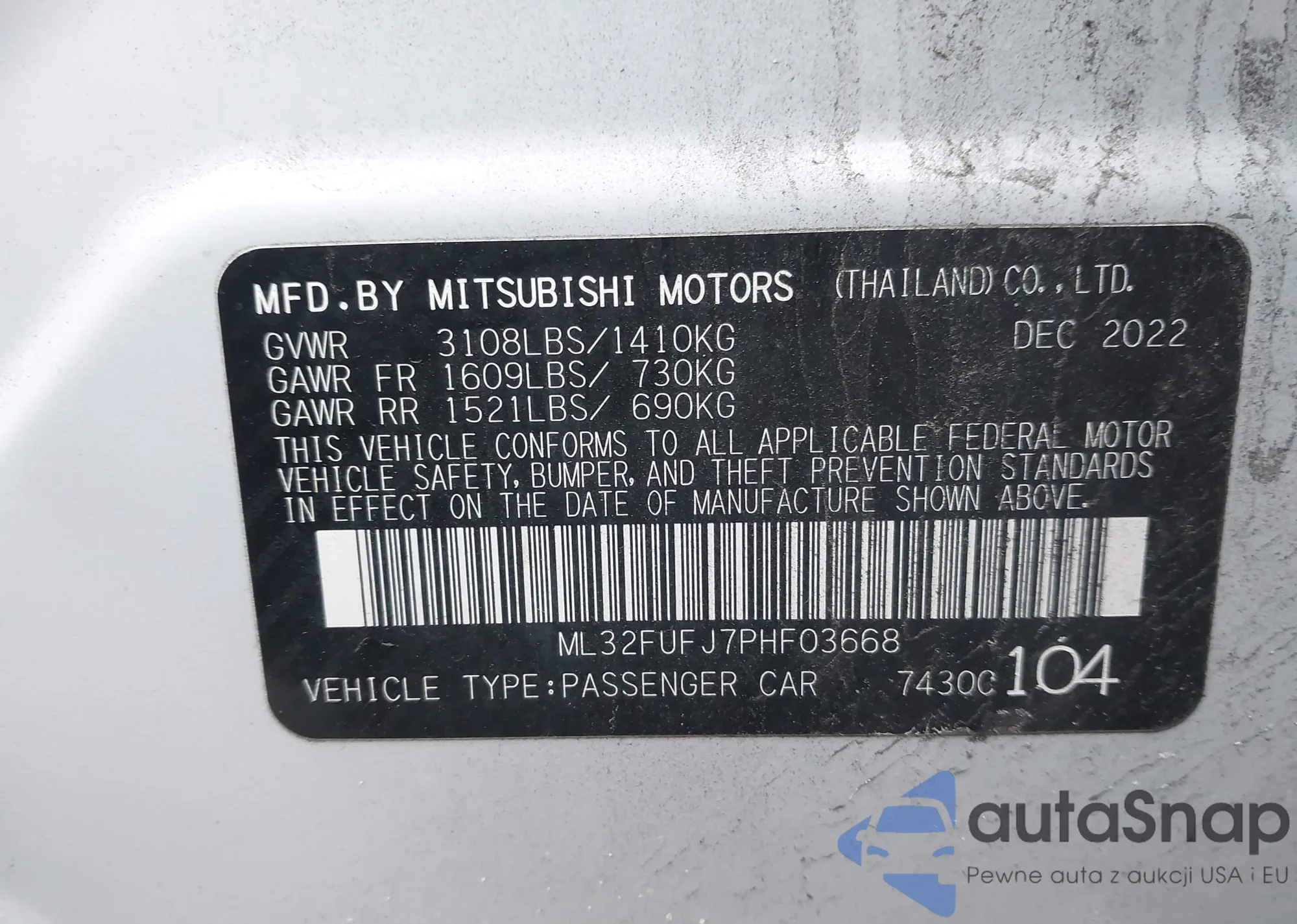 LOT: 43872886 VIN: ML32FUFJ7PHF03668