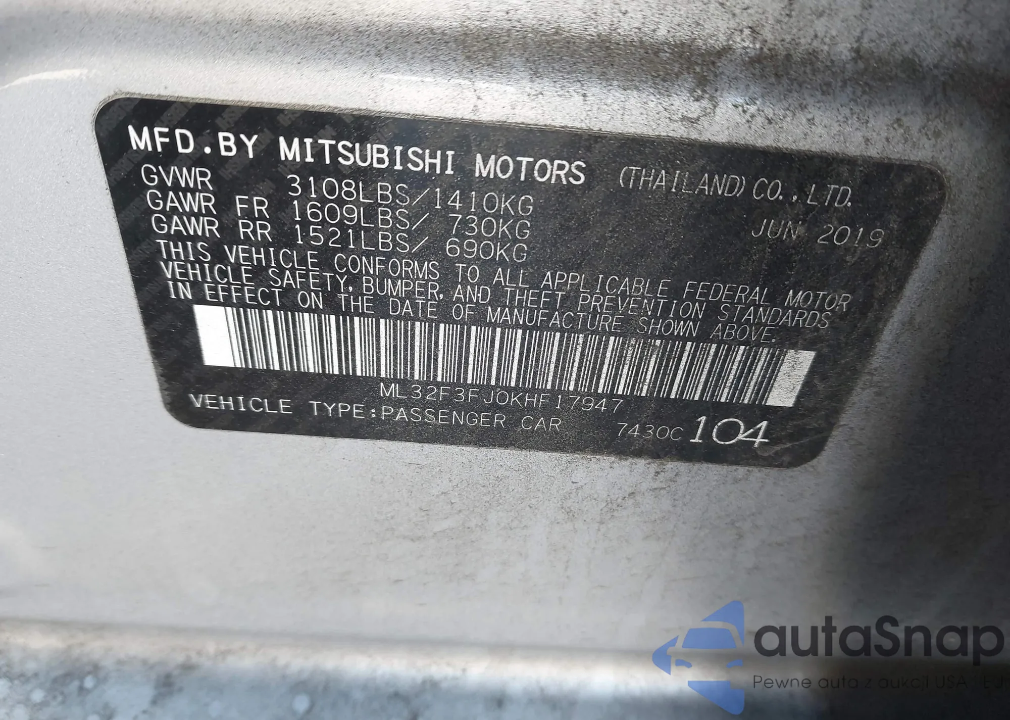 LOT: 44215368 VIN: ML32F3FJ0KHF17947