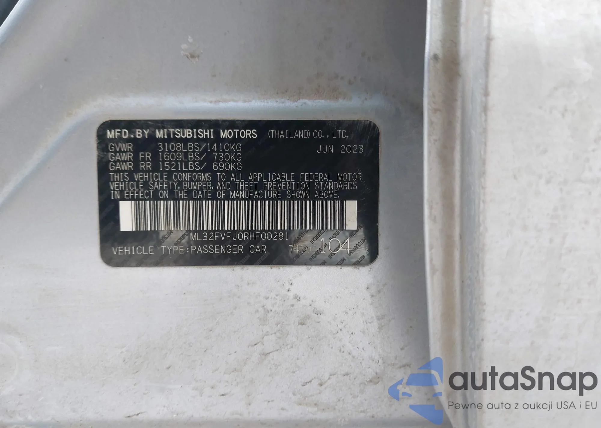 LOT: 93489595 VIN: ML32F3FJ9HHF13257