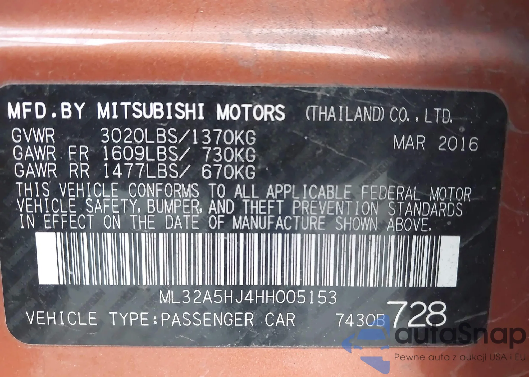 LOT: 44568205 VIN: ML32A5HJ4HH005153